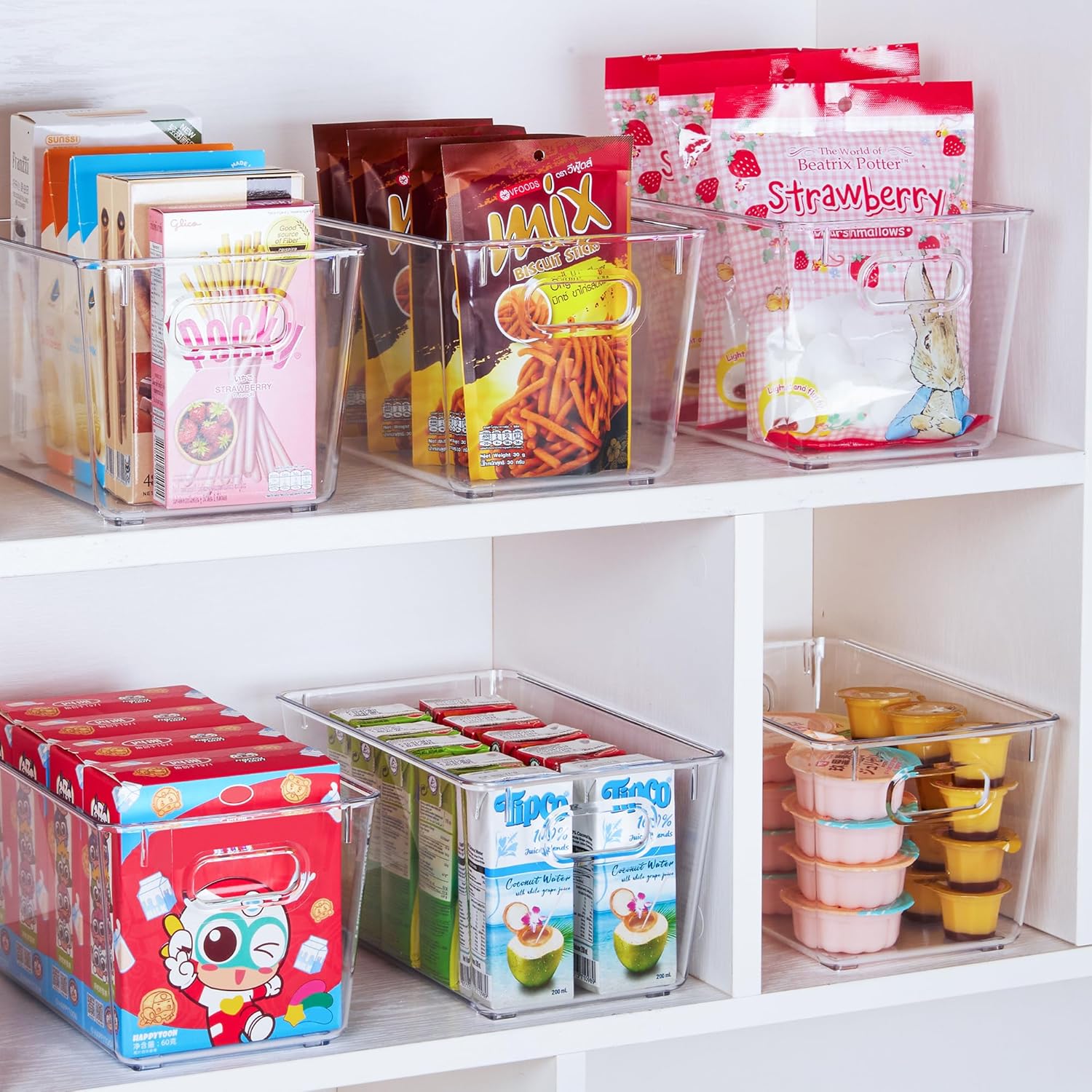 Vtopmart Clear Plastic Pantry Organizer Bins, 2 PCS Food Storage Bins with Handle for Refrigerator, Fridge, Cabinet, Kitchen, Countertops, Cupboard, Freezer Organization and Storage, BPA Free, Medium