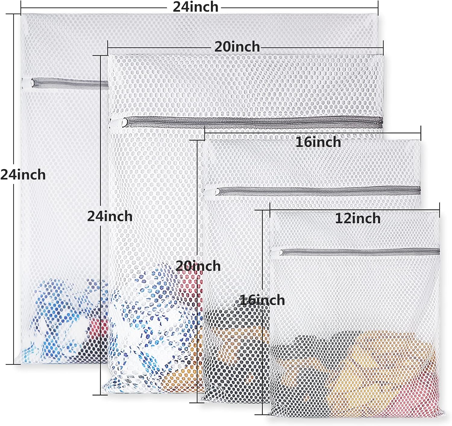 • 4Pcs Set,Perfect Combination (4 PackSets):1XXL (24 X24 inches),1XL(20 X24 inches),1L(16 X20 inches),1M(12 X16 inches) laundry mesh bag. This delicate laundry wash bag set can meet most family of 4 or 5 demand. ,more clean. Suitable for washing clothes, jeans, underwear, socks and other clothing, as well asbath towels and other household items,24 inches X 24 inches Suitable for , Jeans And Other Large Clothing, As Well AsBath Towels, Bed Sheets, Tablecloth, Curtains And Other HouseholdItems.