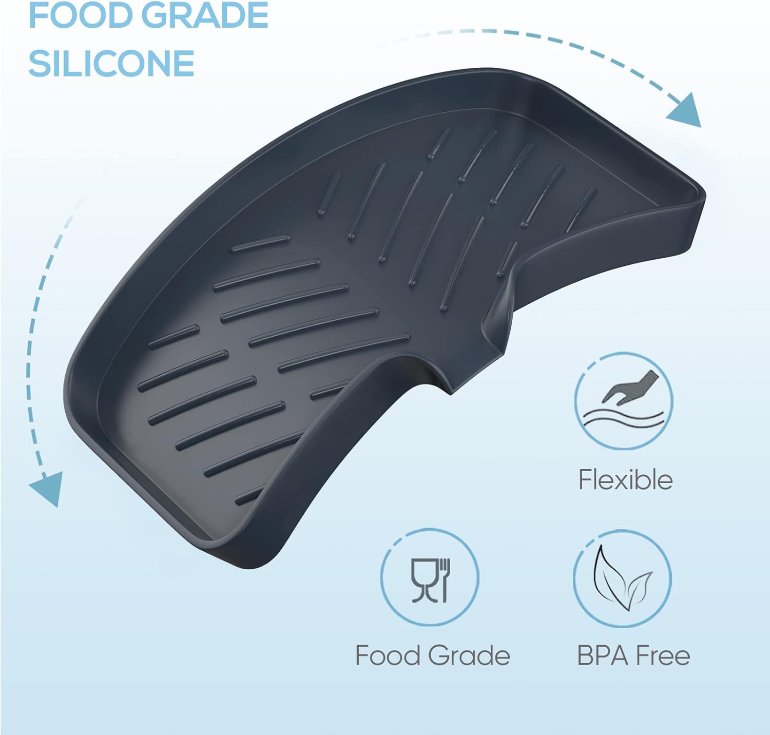 • 【Superior Quality Food-Grade Silicone】 Our kitchen sink tray is made of superior quality food grade silicone which is BPA free and flexible, it won't crack, peel or become brittle.This silicone sponge holder is heat resistant for use with hot tools and it is easy to clean, you can put it into the dishwasher. More importantly, this silicone dish soap holder prevents slipping by offering a grip.