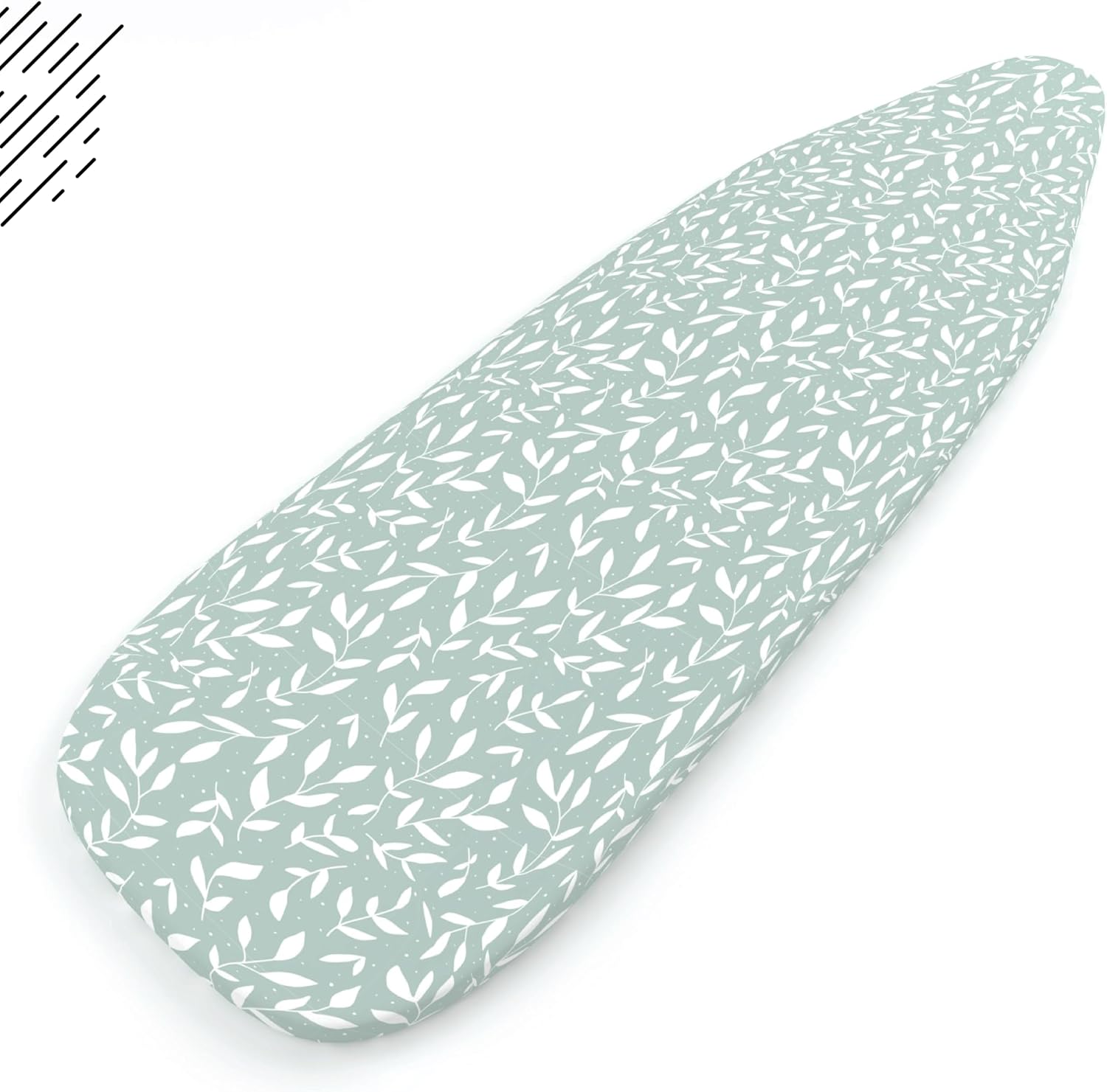 Encasa XO Ironing Board Cover and Pad 54"x15" - Thick 3mm Felt Padding, Drawstring Tightening & Lock, Easy Fit, Scorch & Stain Resistant, Fits Standard Large Ironing Board - Green Leaflet