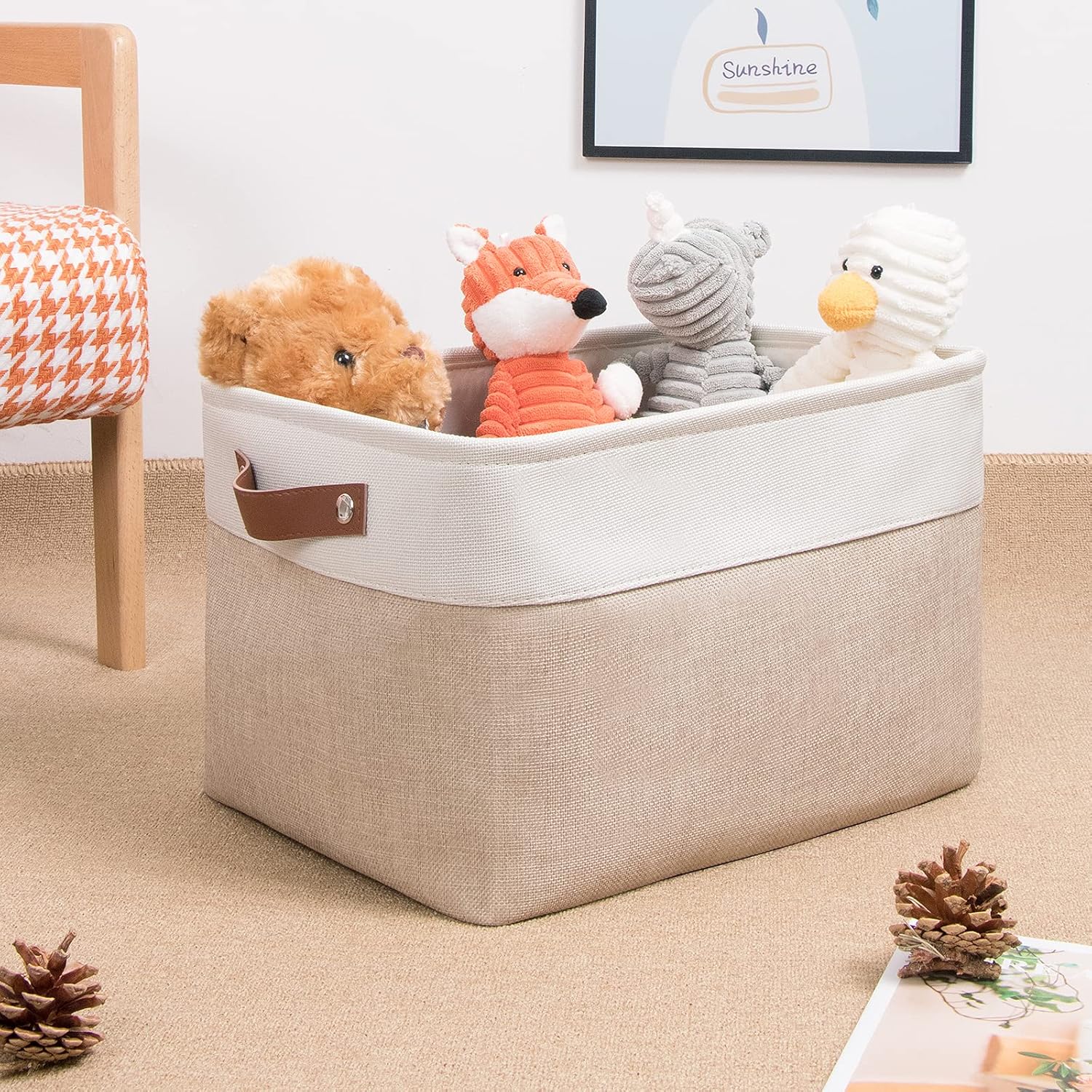 • 【Modern & Decorative】The fabric baskets for storage with neutral colors can match a lot of home styles - keeping your home nice and tidy. Fabric storage baskets for shelves ideal for living room, bedroom, bathrooms, utility room, kids room, Nursery Room, craft room, playroom, baskets for gifts empty, shelf, baskets for closets, dorms, condos, laundry room, toilet, or even in the hallway.
