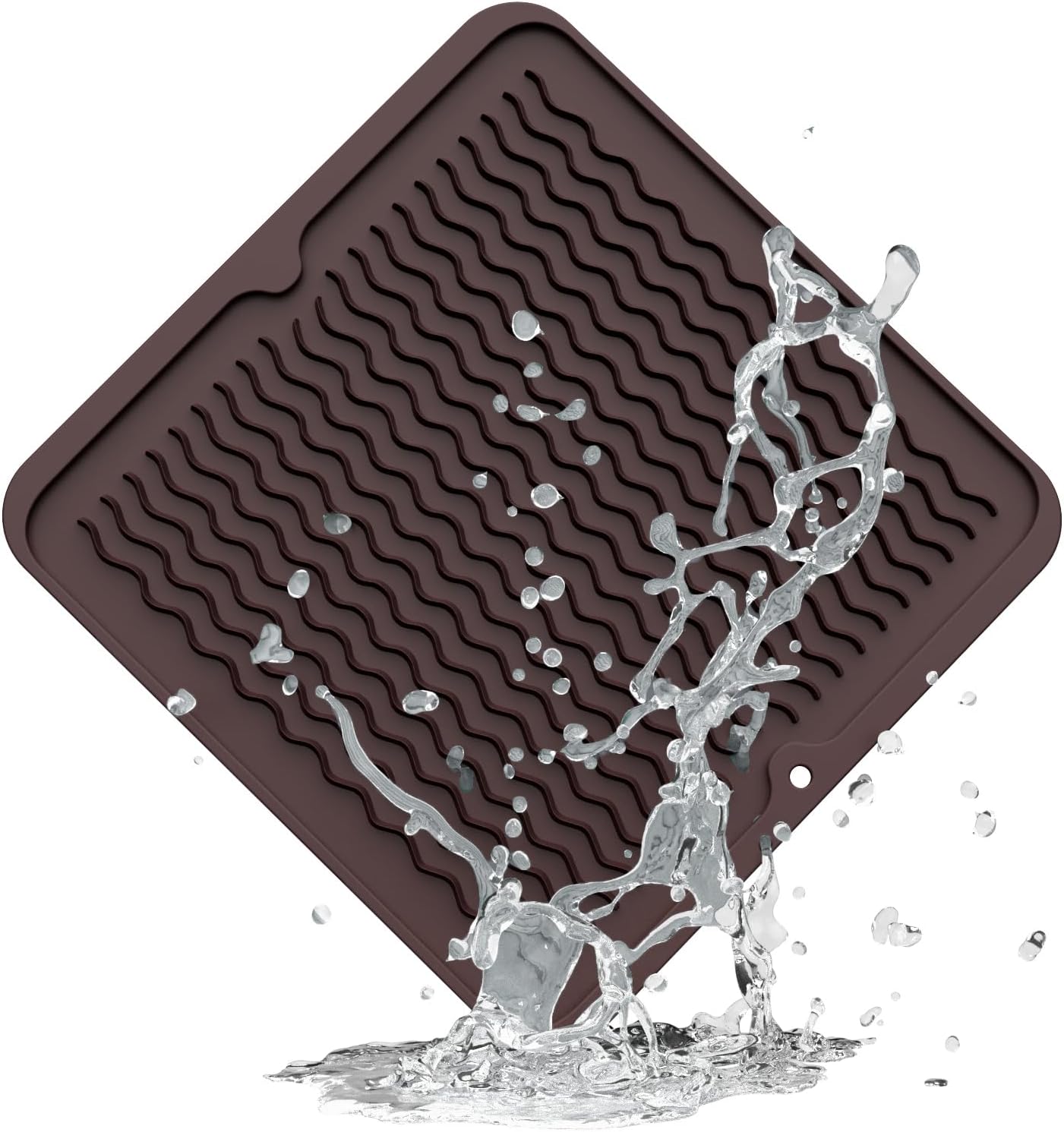ZLR Silicone Dish Drying Mat for Kitchen Counter, Eco-Friendly Fast Dry Dish Mat, Easy Clean Multi Usage Drying Matt, Heat Resistant Trivet, 12" x 12" Middle, Coffee