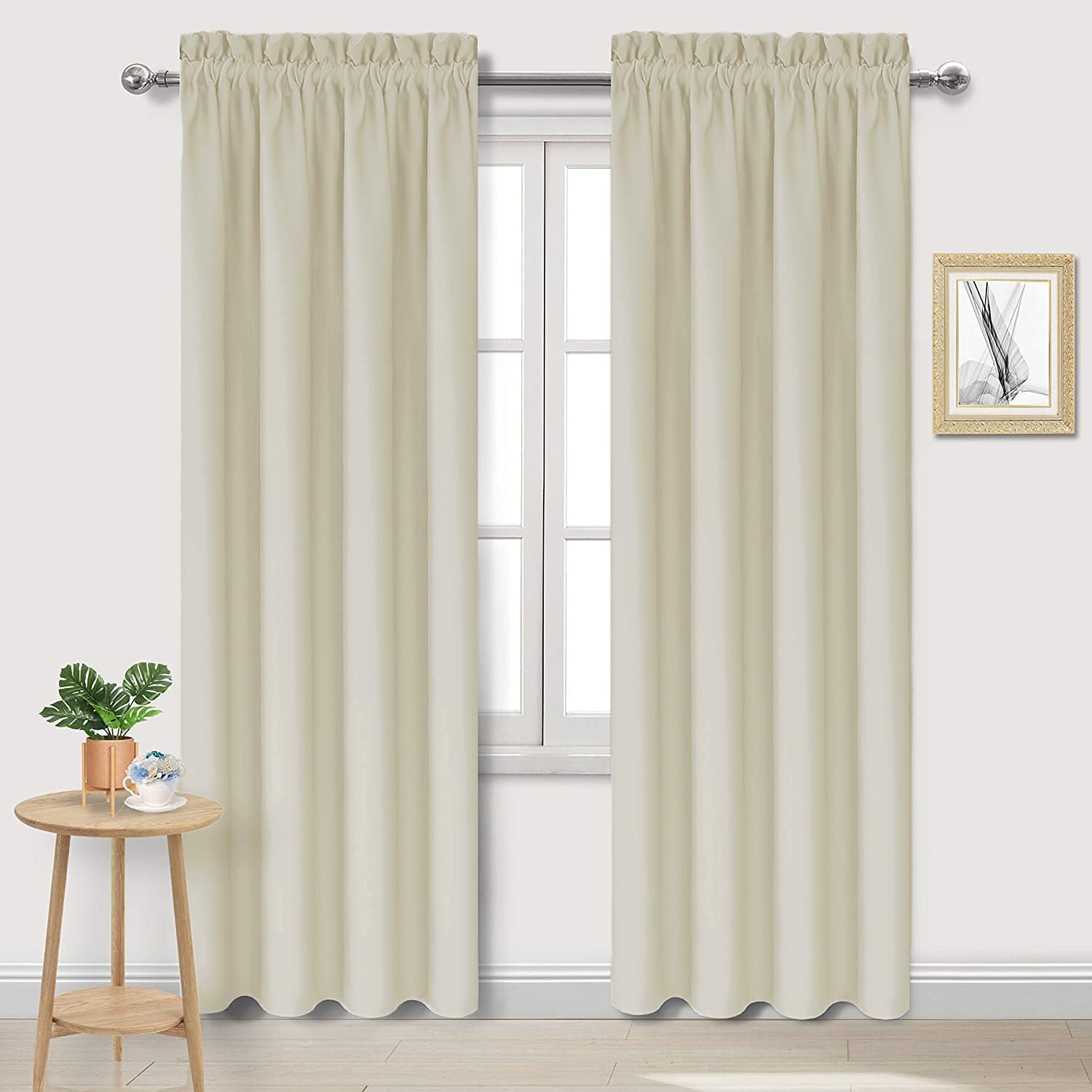 DWCN Blackout Curtains for Bedroom – Rod Pocket Thermal Insulated Noise Reducing Noise Reducing Drapes for Living Room, W 42 x L 84 Inch, 2 Panels, Light Beige
