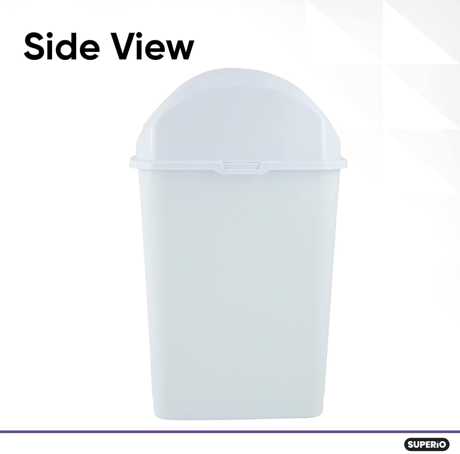 Superio Medium Trash Can with Lid 4.5 Gallon Plastic Swing Top Garbage Can Slim Waste Bin for Under Sink/Cabinet, Laundry Room, Kitchen, Office, Bedroom, Bathroom, College Dorm, 18 Qt, White, 2