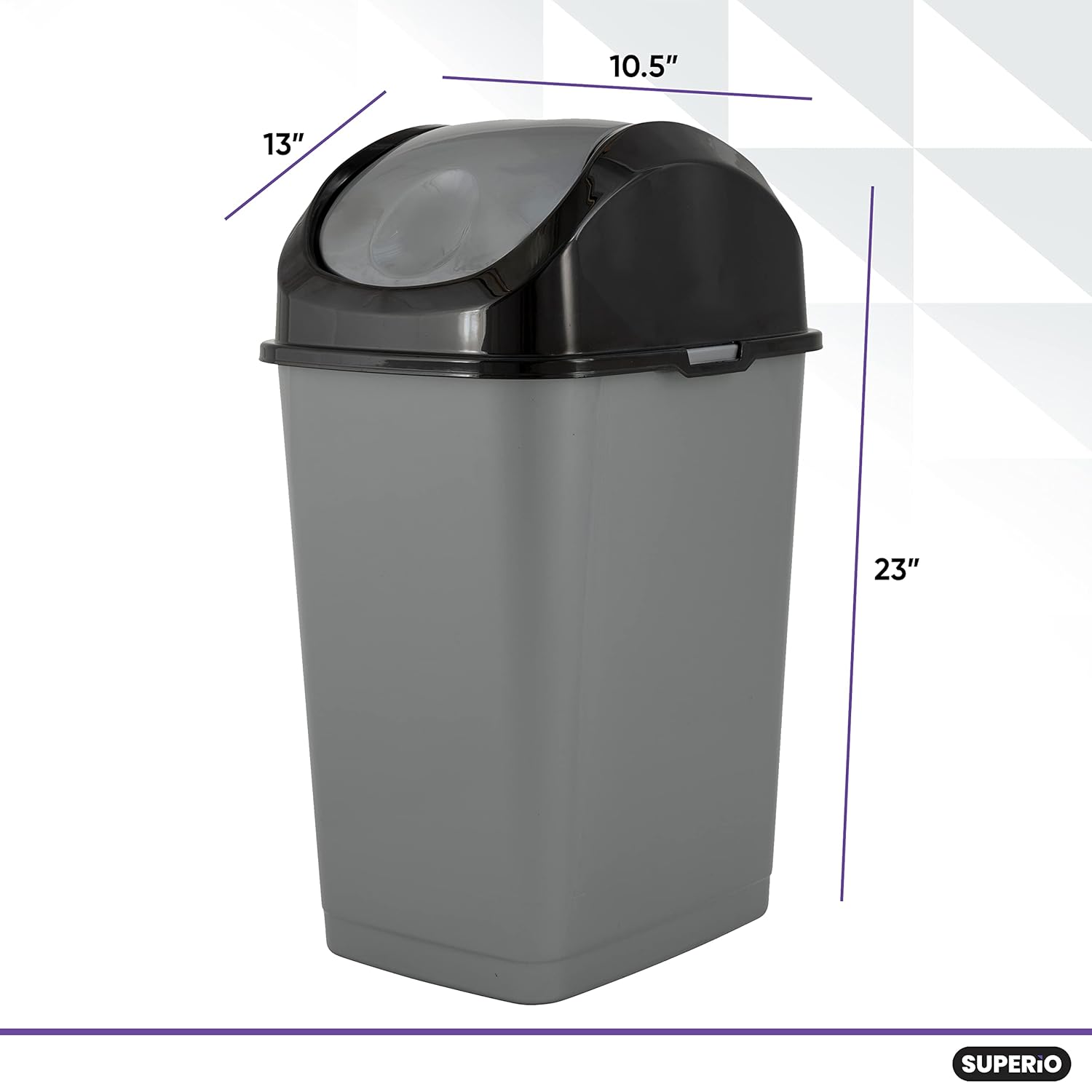 Superio Office Trash Can with Lid 9 Gallon Kitchen Garbage Can Bedroom Waste Basket 37 Qt. Swing Top Trashcan Plastic Durable Waste and Recycle Bin (2, Grey/Black)