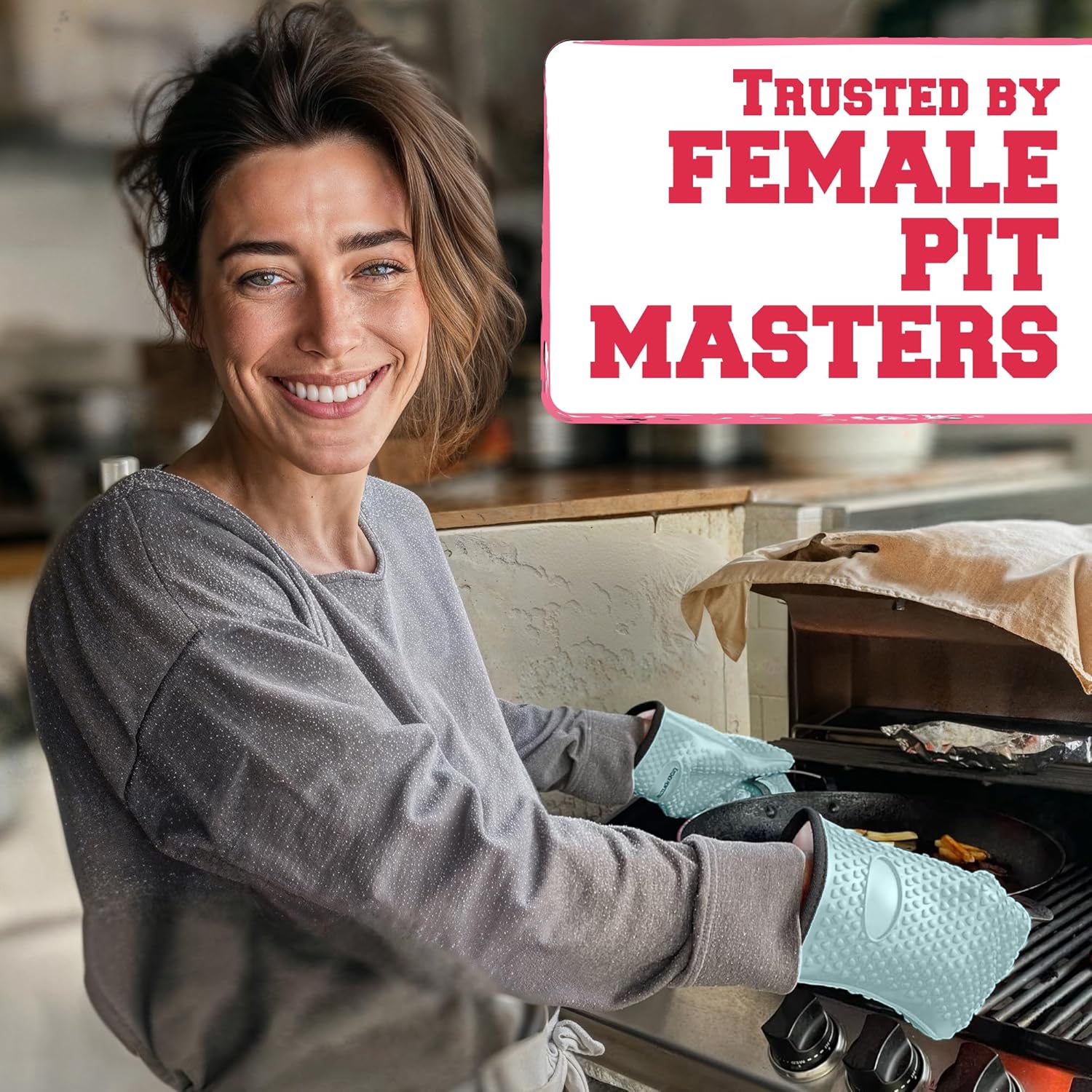 KITCHEN PERFECTION Silicone Smoker Oven Gloves For Women -Extreme Heat Resistant BBQ Gloves -Handle Hot Food Right on Your Smoker Grill Fryer|Waterproof Oven Mitts Grill Gloves |Superior Set+3 Bonuses