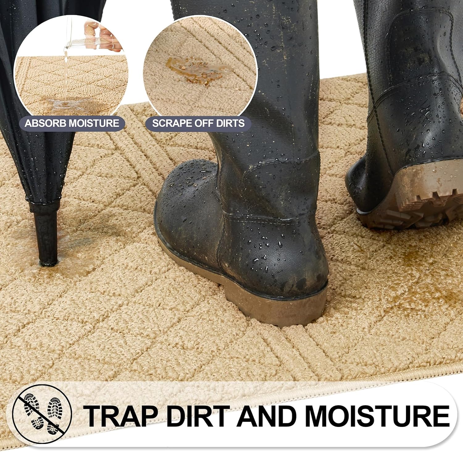 • 【TRAP DIRT & ABSORB MOISTURE】Eliminates dirty and wet foot prints when you entering the house. REFETONE door mat using double layer technology which helps to scrap off dirt, water, dust, grit, mud, sand, grass, slush, snow and absorb moisture from shoe. Say goodbye to messy floors and keep your indoor environment clean and tidy. Indoor doormat perfect for high-traffic areas and widely used for all seasons, especially for the rainy, snowy, or muddy weather. Enjoy your home every time!