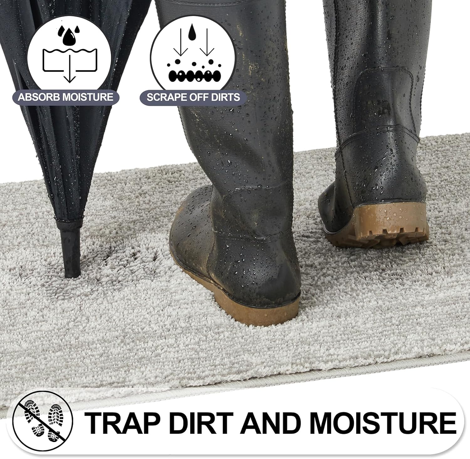 • 【TRAP DIRT & ABSORB MOISTURE】Eliminates dirty and wet foot prints when you entering the house. REFETONE door mat using double layer technology which helps to scrap off dirt, water, dust, grit, mud, sand, grass, slush, snow and absorb moisture from shoe. Say goodbye to messy floors and keep your indoor environment clean and tidy. Indoor doormat perfect for high-traffic areas and widely used for all seasons, especially for the rainy, snowy, or muddy weather. Enjoy your home every time!