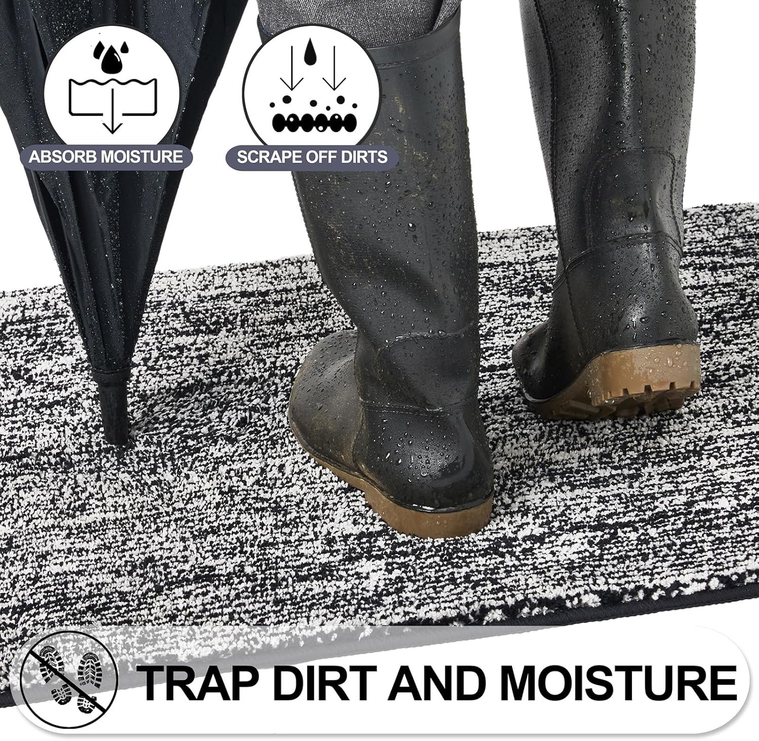 • 【TRAP DIRT & ABSORB MOISTURE】Eliminates dirty and wet foot prints when you entering the house. REFETONE door mat using double layer technology which helps to scrap off dirt, water, dust, grit, mud, sand, grass, slush, snow and absorb moisture from shoe. Say goodbye to messy floors and keep your indoor environment clean and tidy. Indoor doormat perfect for high-traffic areas and widely used for all seasons, especially for the rainy, snowy, or muddy weather. Enjoy your home every time!