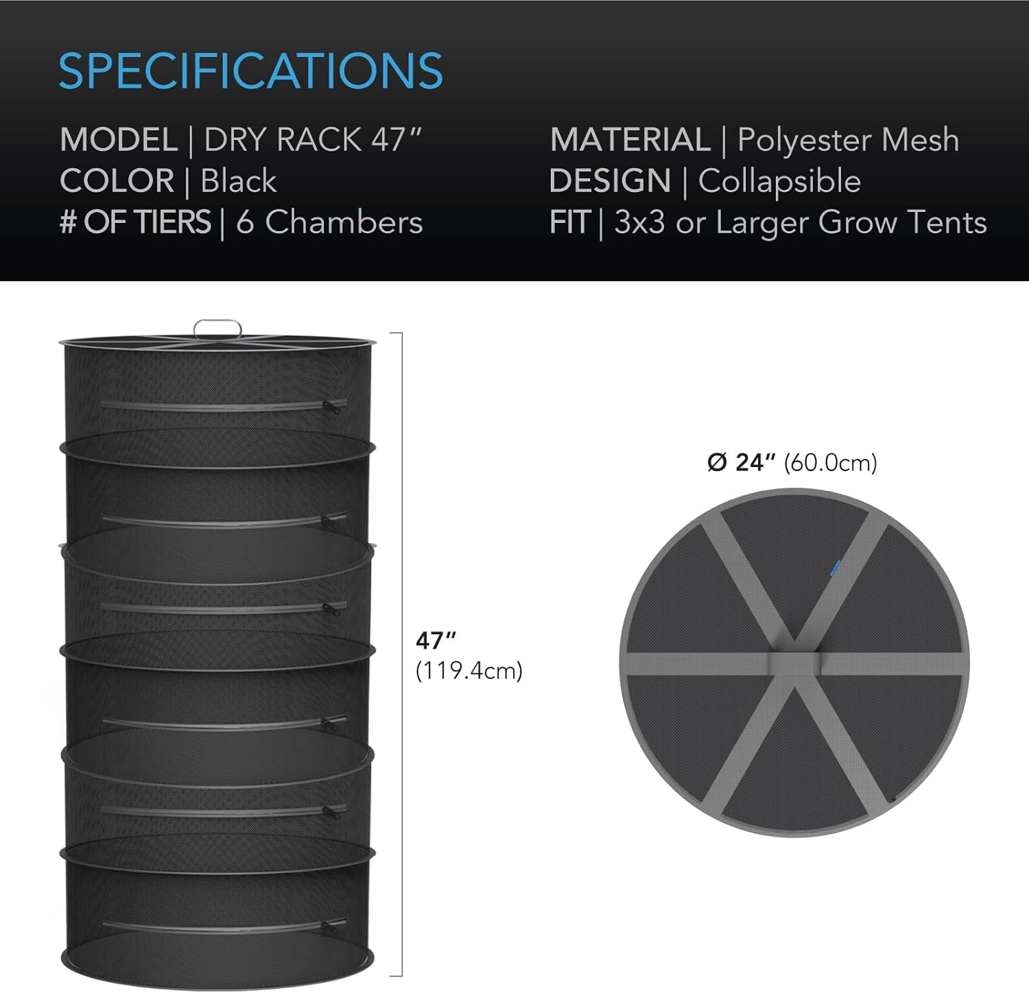 • 6 Tiers | 24 in. Diameter | Fits 3x3 or Larger Grow Tents | Includes Hanging Hook & Carrying Bag