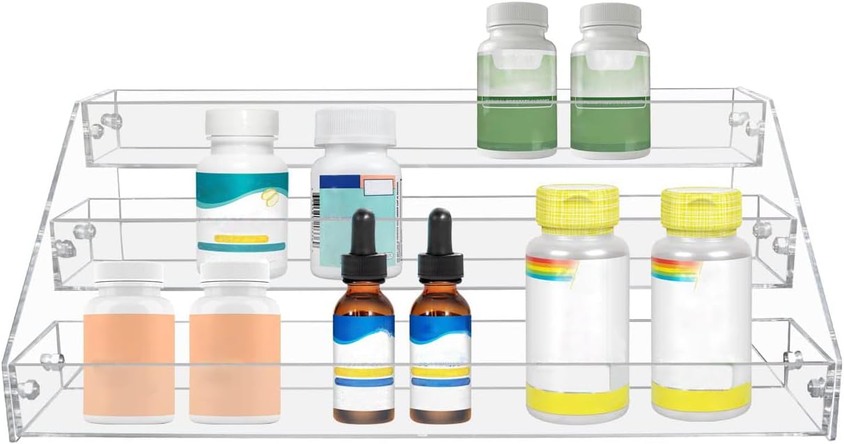 • MULTIPLE FUNCTIONS: The acrylic tiered spice racks allows you to easily locate and obtain the items you need; It can be used to storage and organize spice jars, sauces, bottles, medicine bottles, etc