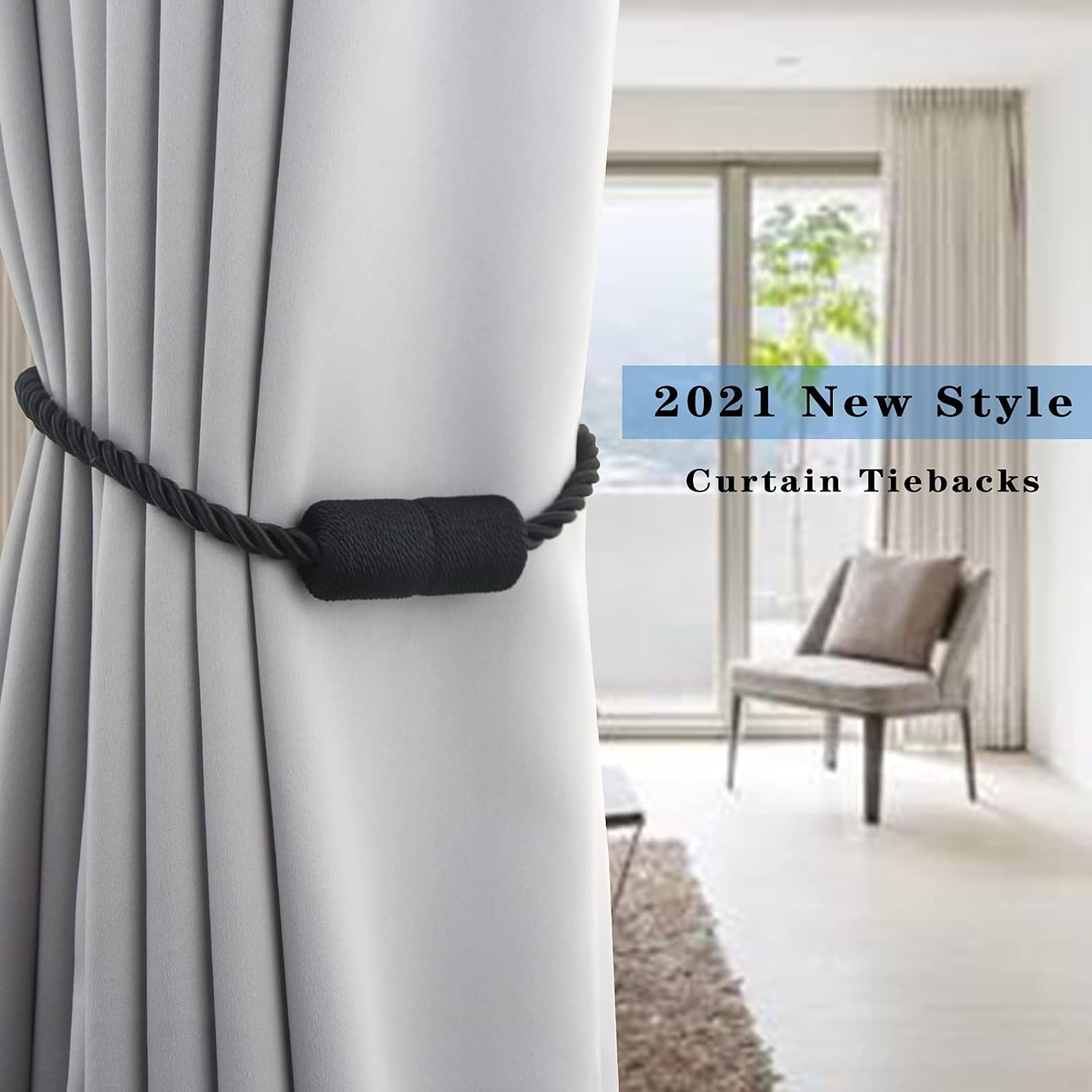 6 Pack Black Strong Magnetic Curtain Tiebacks Outdoor Elegant Decorative Tie Backs Modern Rope Tiebacks for Drapes Window Curtain Holdbacks for Draperies