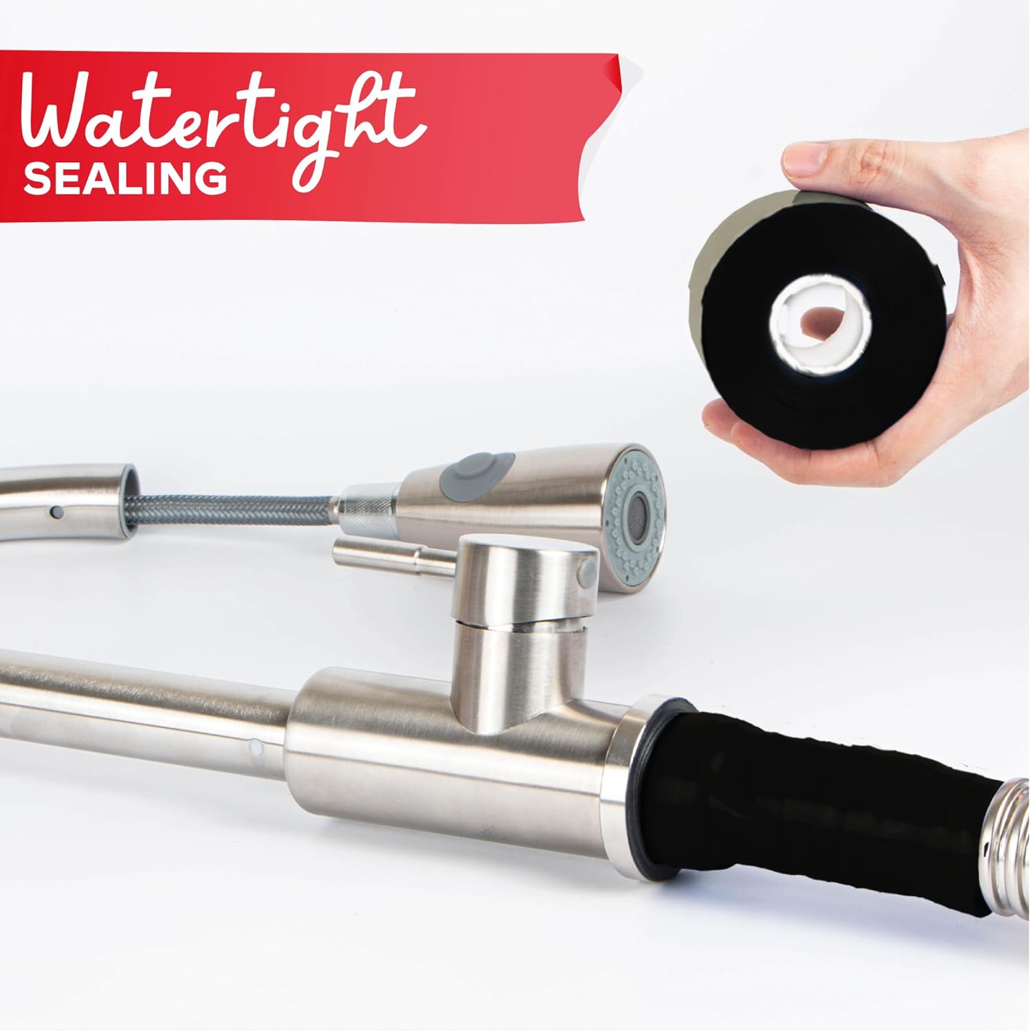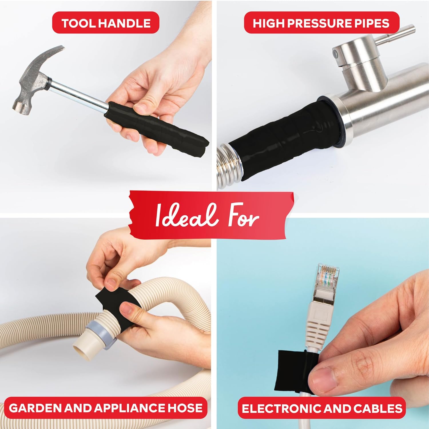 • IDEAL FOR QUICK EMERGENCY REPAIRS. Our Self-Fusing Silicone Tape PRO is made from 100% Silicone that wraps around itself without the need of any adhesive, providing instant airtight and waterproof sealing to leaky hoses, pipes, electrical wiring, outdoor coax, wiring harnesses, and other fittings and connections. This stretch and seal tape is a must-have for plumbing, leak repair, and car or boat repair kits.