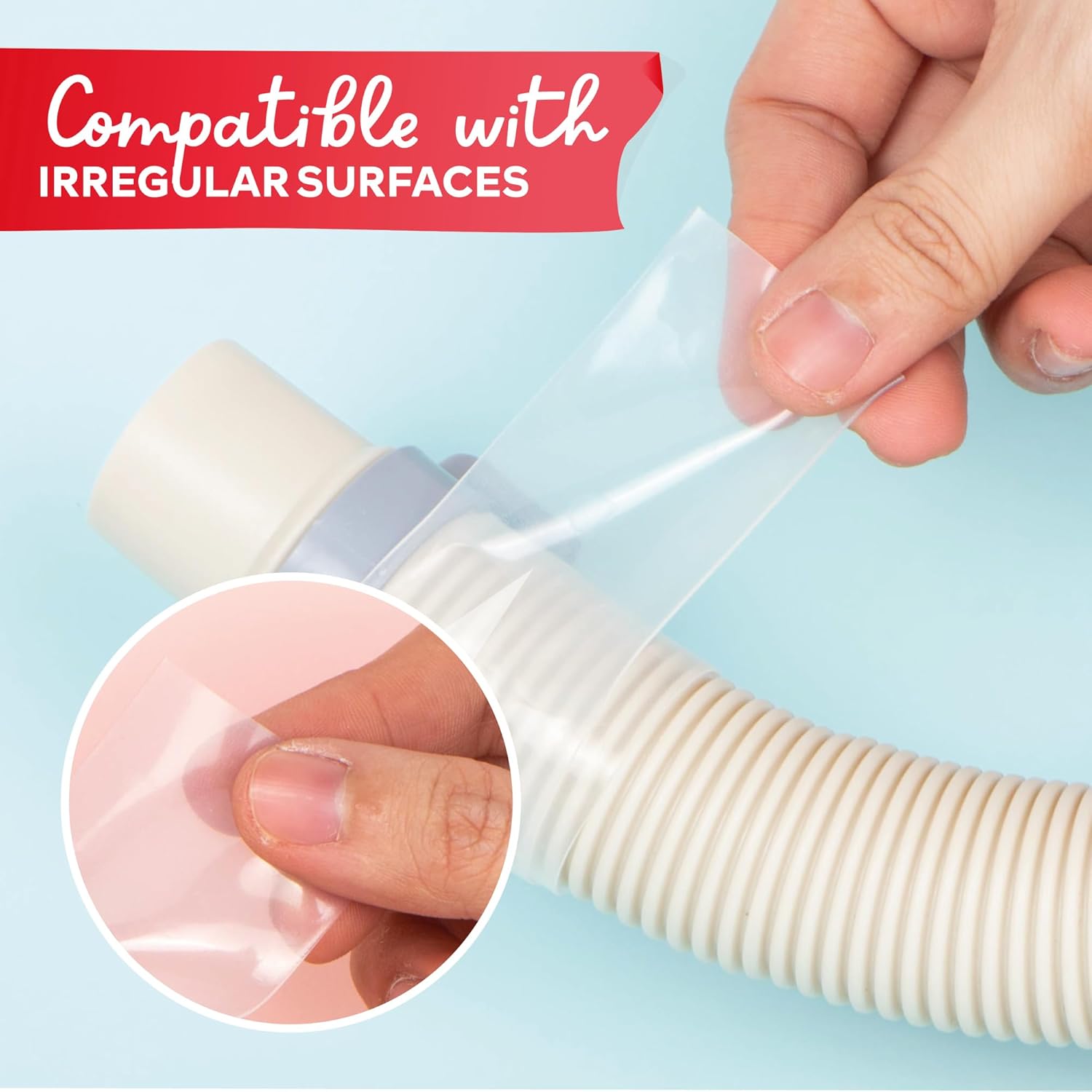 • IDEAL FOR QUICK EMERGENCY REPAIRS. Our Clear Self-Fusing Silicone Tape PRO is made from 100% Silicone that wraps around itself without the need of any adhesive, providing instant airtight and waterproof sealing to leaky hoses, pipes, electrical wiring, outdoor coax, wiring harnesses, and other fittings and connections. This stretch and seal tape is a must-have for plumbing, leak repair, and car or boat repair kits.