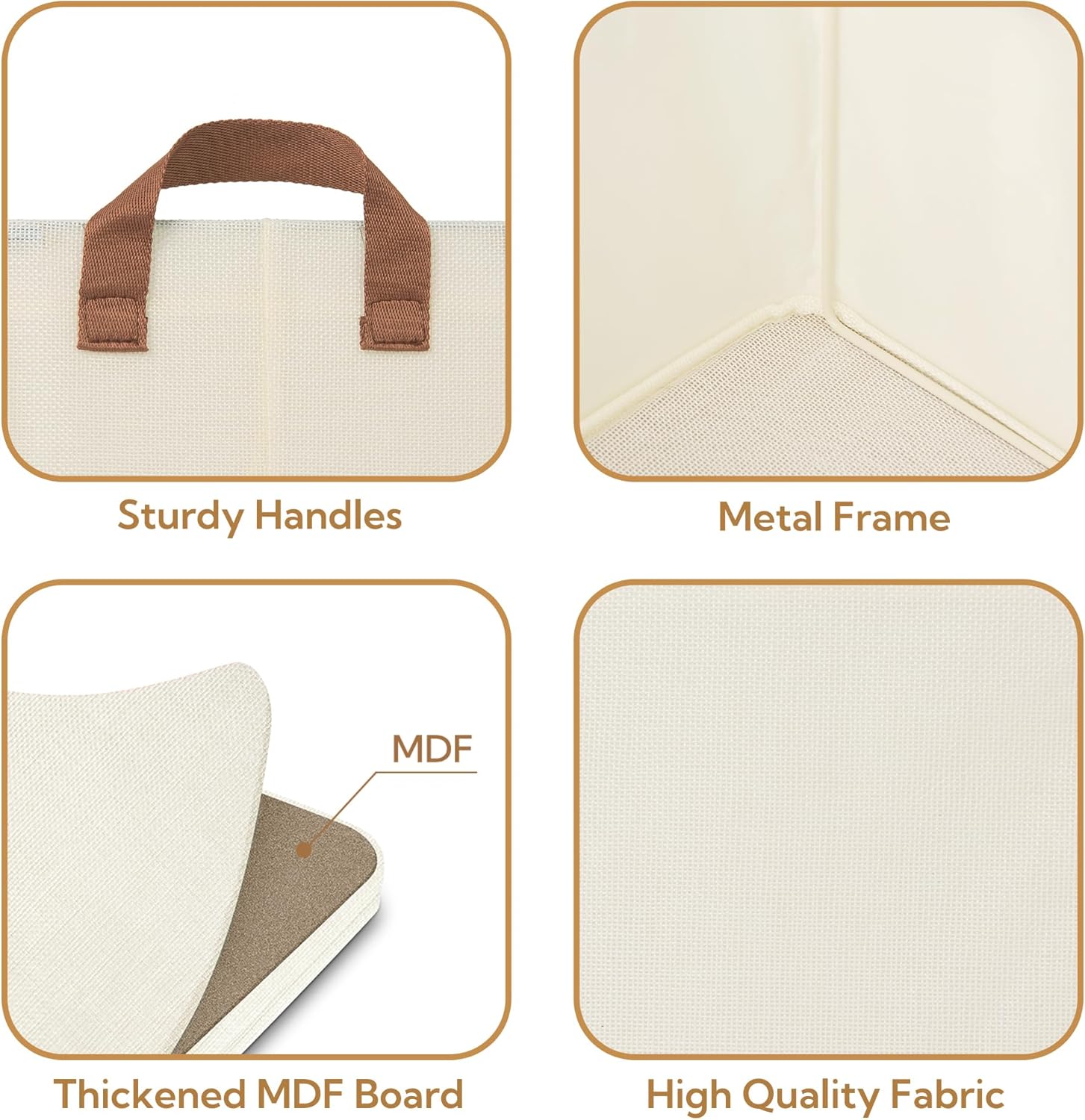 • Premium Material - These storage boxes are made of Imitation linen fabric, making them durable and easy to care for. The bottom uses thickened MDF board and can bear a load of up to 30 pounds.