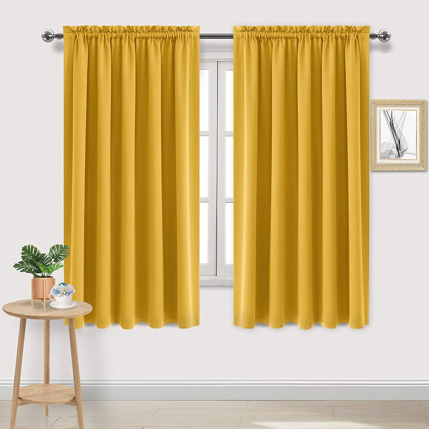 DWCN Blackout Curtains for Bedroom – Rod Pocket Thermal Insulated Noise Reducing Noise Reducing Drapes for Living Room, W 60 x L 63 Inch, 2 Panels, Yellow