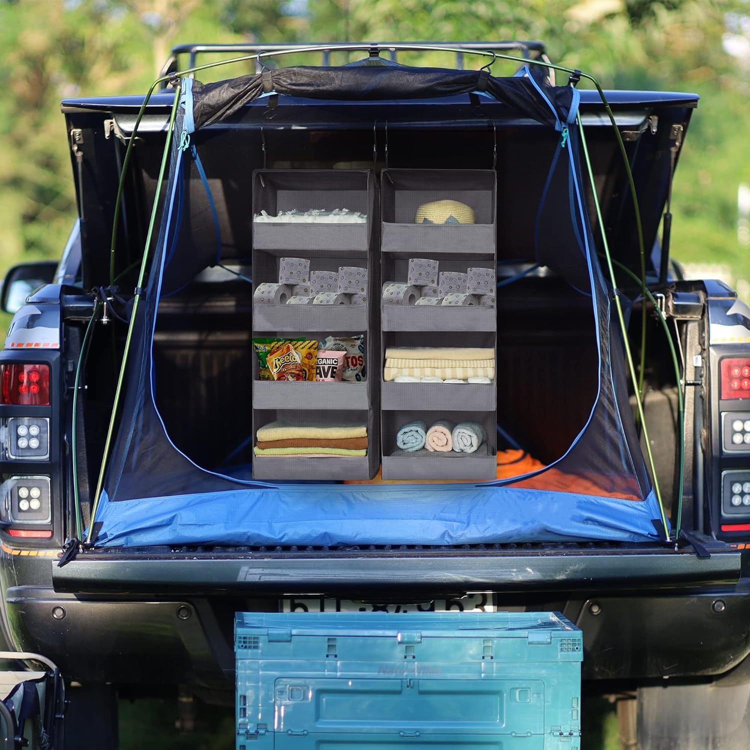 • Foldable and Portable: The fabric hanging closet organizer can be collapsed flat for space-saving when not in use or taken to travel. Easy to carry and install, very practical in car, travel, picnic, trailer.