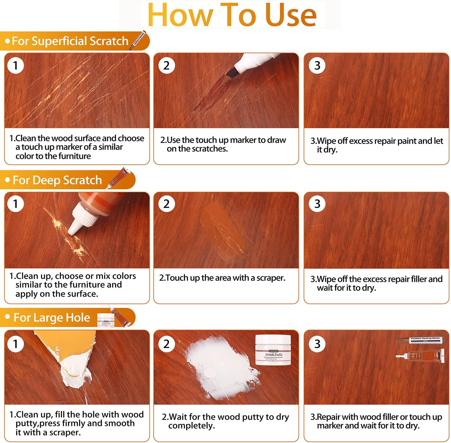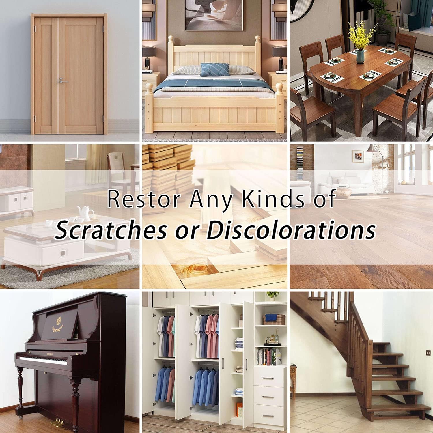 • Laminate Floor Repair Kit Easy to Apply: - Wood furniture repair kit can restore all kinds of damages such as beds, shelves, cabinets, tables, frames, doors, laminate, baseboard, veneer and much more. Now there's no need for you to call a professional to retouch your scuffed furniture. Become the pro yourself!