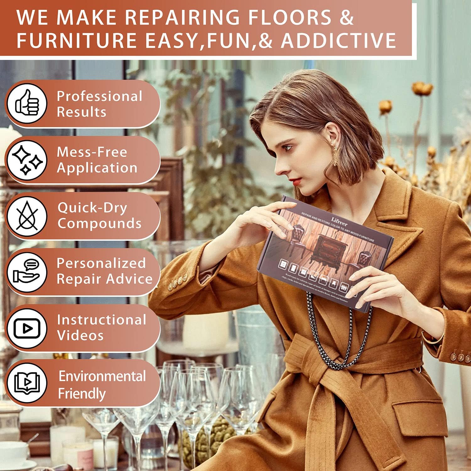 • Top Quality Wood Furniture Repair Kit: Lifreer wood scratch repair kit is crafted from durable materials to withstand everyday wear and tear, providing long-lasting results. The wood putty filler seamlessly blends into the surface of your furniture, making it look brand new. Designed for wood repair enthusiasts and furniture owners seeking to restore the beauty of wooden pieces.