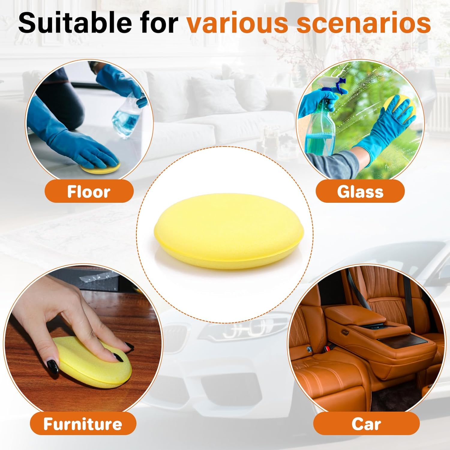 • Wide Application: Microfiber applicator pad is suitable for automobile painting, interior dashboards, bumpers, leather sofas, furniture, floors, tiles, electroplating parts, etc. Tips: Please put car wax applicator pad in a ventilated place when not in use, it will harden and dry out and keep it clean. If you need to use it again, just soak the sponge