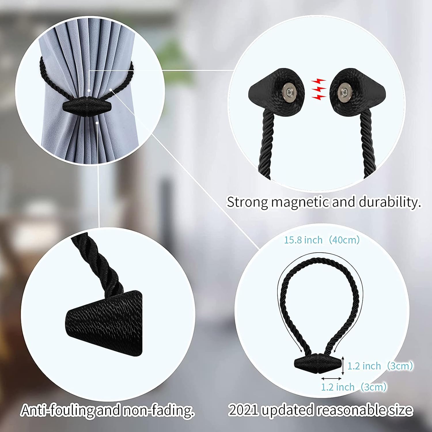Hion Magnetic Curtain Tiebacks Black 2pcs, Curtain Tiebacks Buckles Holdbacks Holders Hooks Clip for Home Bedroom Office Decorative Curtain