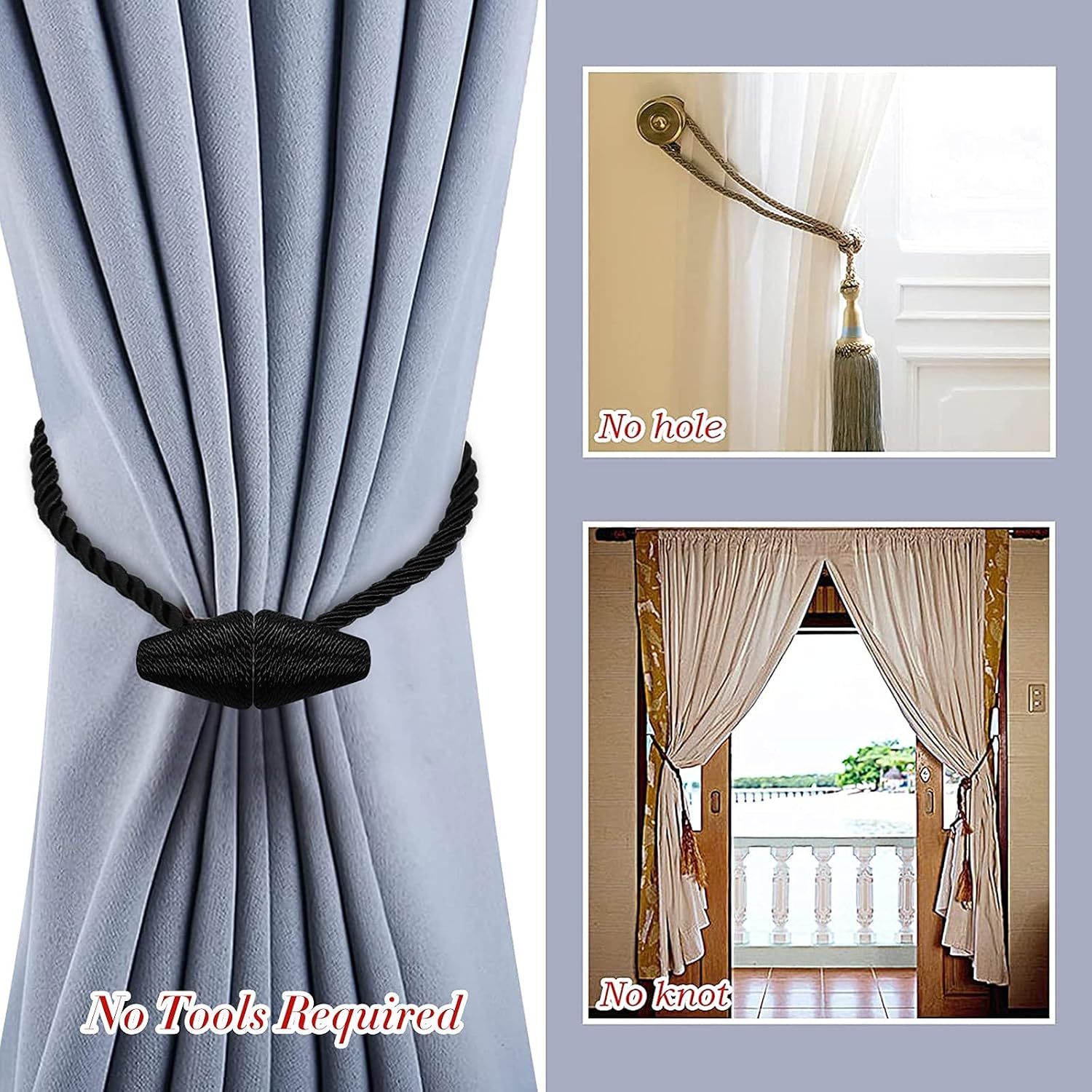• [Upgrade Powerful Magnetic] Our magnetic curtain tiebacks magnets use high-end new imported nickel-plated magnets, with strong corrosion resistance and durability, more magnetic than ordinary magnetic curtain tiebacks, and do not rust and not lose color. The rope of curtain tie adopts upgrade thickened solid polyester yarn, which is not only durable, but also not easy to wear or pilling.