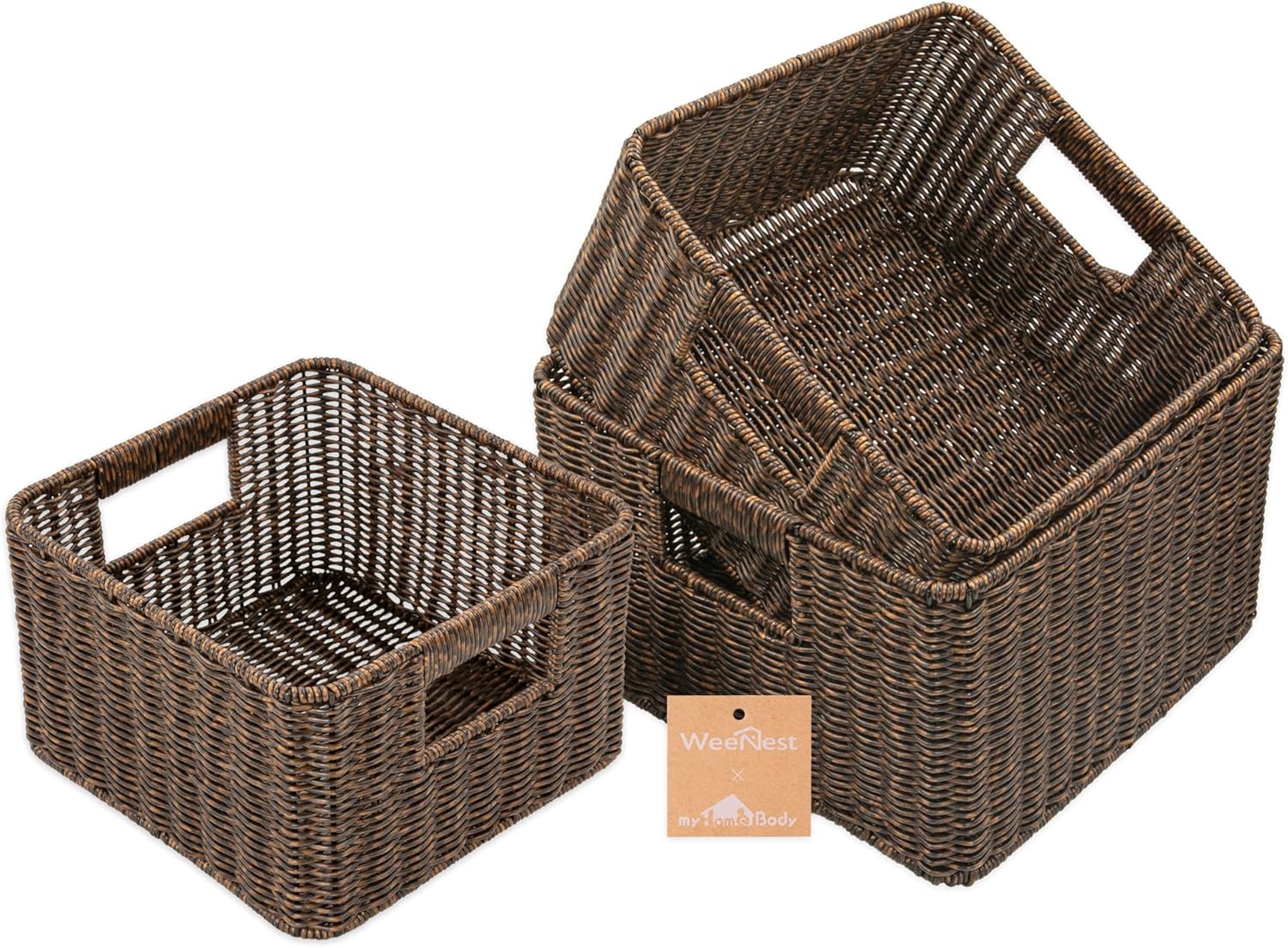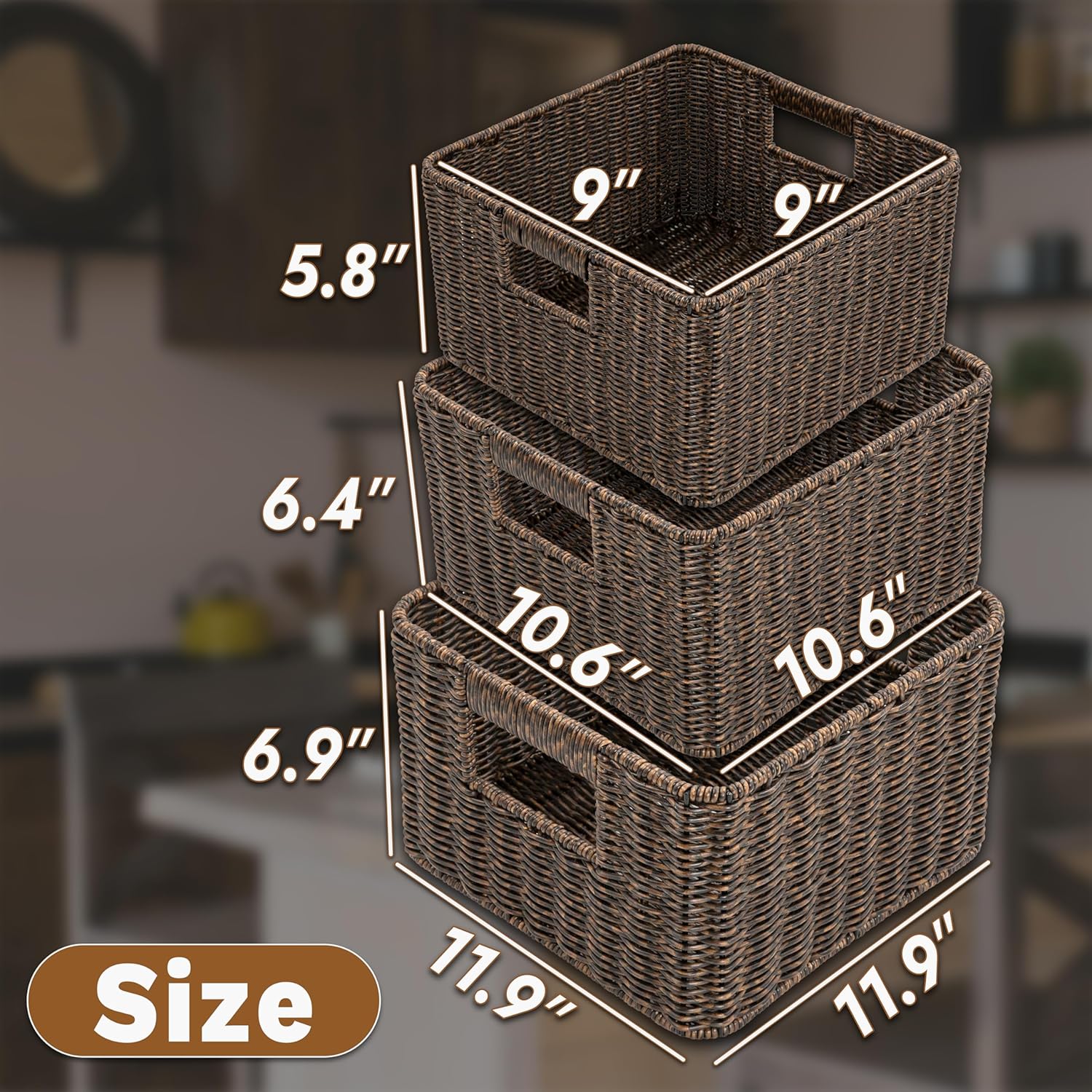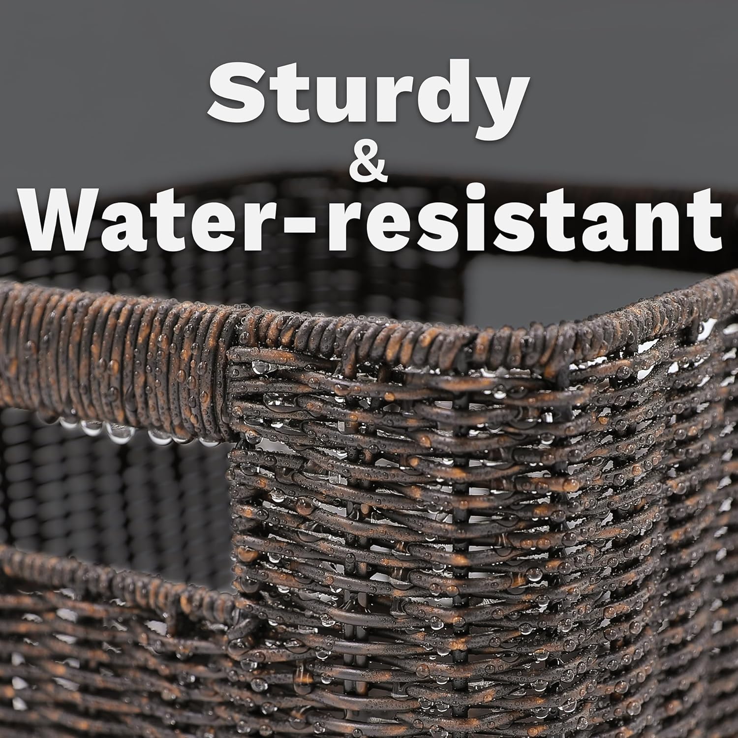 myHomeBody Wicker Storage Basket, Storage Cubes, Woven Baskets for Organizing, Resin Wicker Set of 3, Rustic Brown