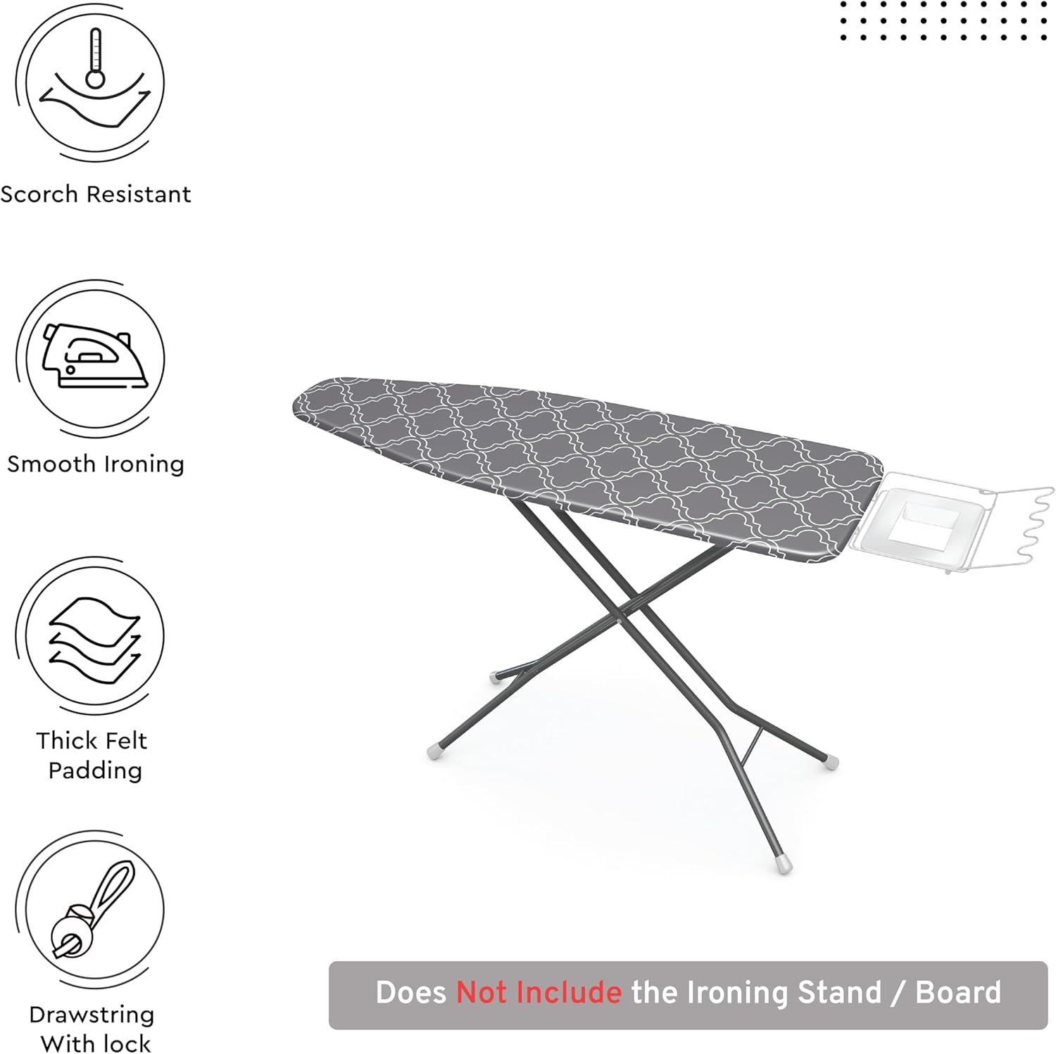 • TOLERATES HIGH TEMPERATURE: Heavy duty ironing board cover tolerates the high ironing temperatures up to 220° C. With the Scorch Resistant finish, you can rest assured that the thick ironing board cover won't discolor easily under excess heat