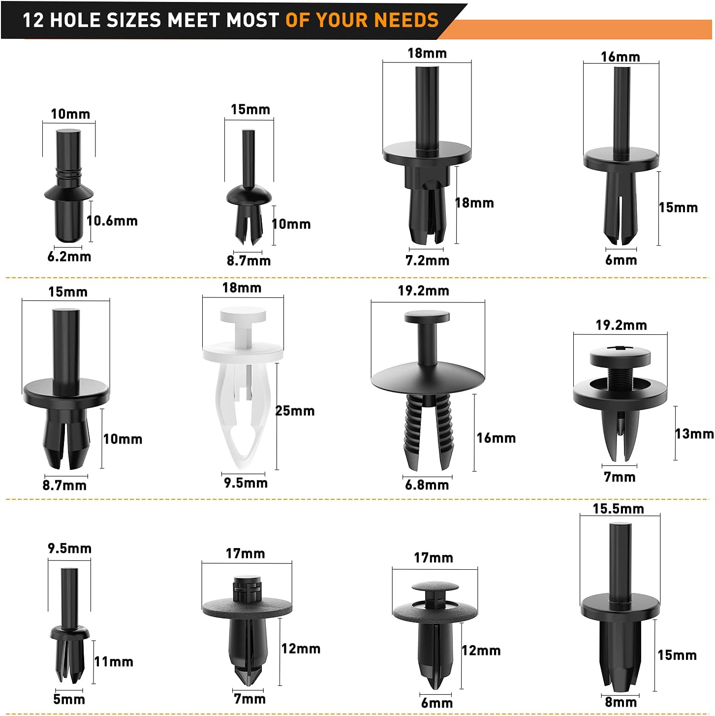 • UNIVERSAL FIT KIT- The kit contains 12 types of most common sizes of fastener clips, suitable for the OEM replacement in 5-10mm hole sizes,that you’ll always have the right size