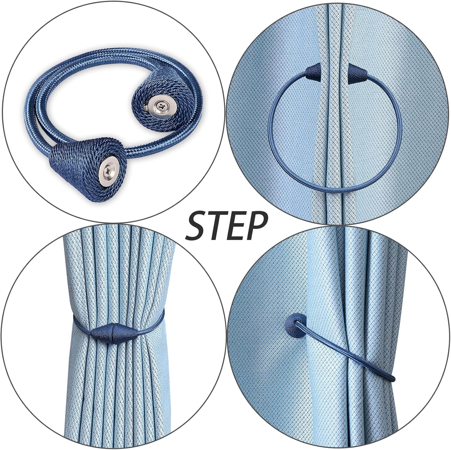 • WIDE APPLICATION: The length and binding method can be adjusted freely according to the thickness of the curtain. It is widely used in curtains in different places such as bedroom, living room, dining room, bathroom, kitchen, office, courtyard and so on. Different colors of magnetic drape tiebacks adorn your curtains, which can change different styles, giving the curtains a unique charm