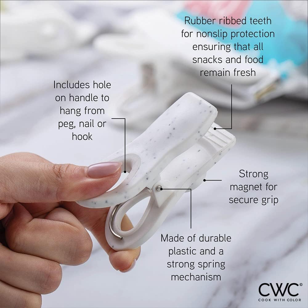 • Bag clips are one of those things you never have enough, invest in a set of durable, long lasting, soft touch, kid friendly Cook with Color food bag clips and organize your home and office with a colorful set of spring clips.