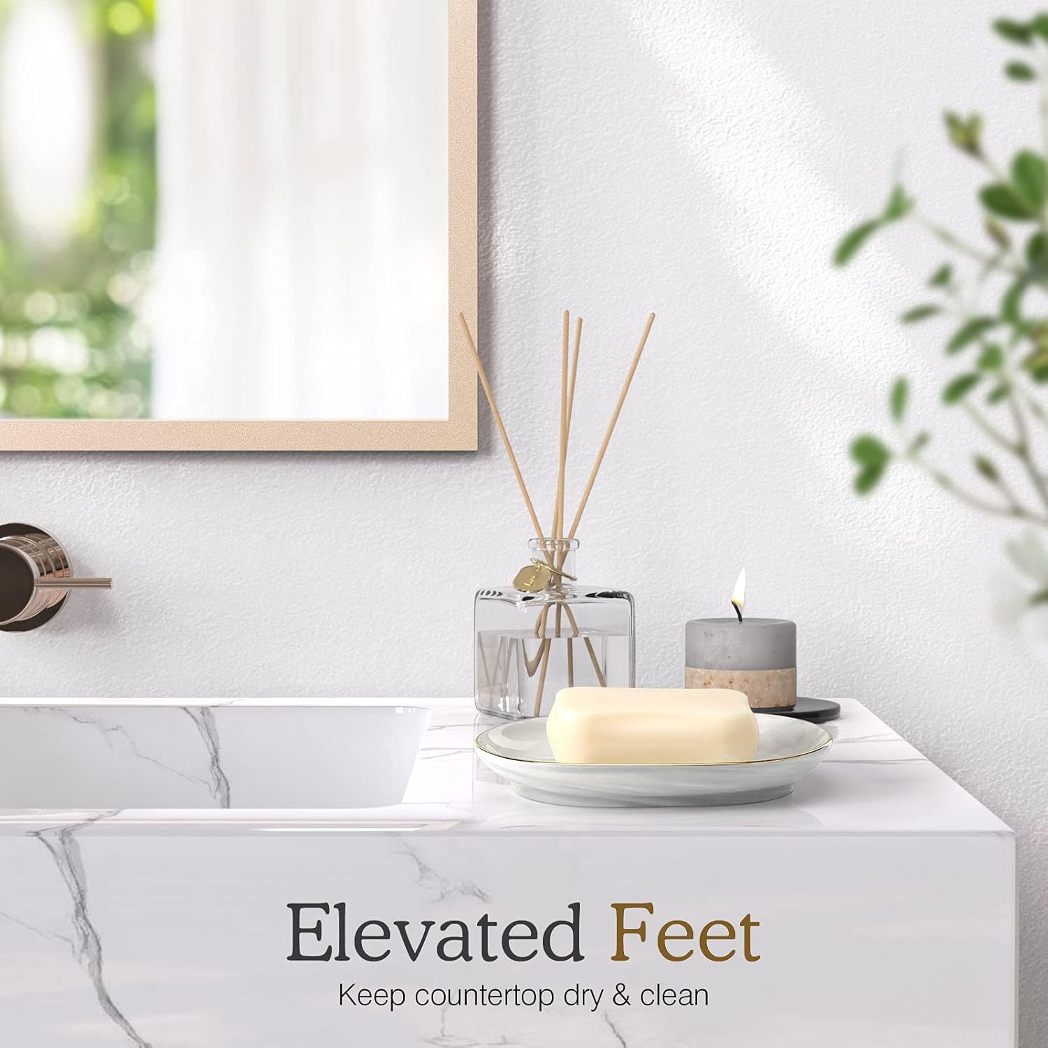 • 【Unique Marble Pattern and Gold Trim Decoration】 With exquisite marble patterns, this soap container is full of modernity and gives a feeling of high-end texture. At the same time, the gold foil trim design adds a sense of luxury to your bathroom or kitchen countertops. Both these unique designs can attract people's attention, which are a good choice to show your taste.