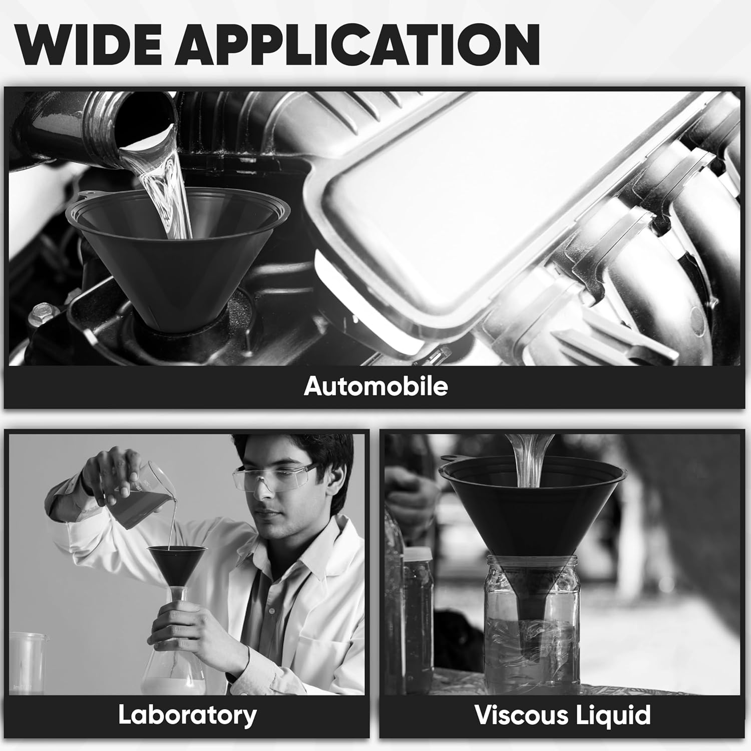 • Make Your Life Easier: Our funnel set is the perfect solution not only for transferring oil, spices, or car fuel but also for craft projects. Use the mini funnels for filling small bottles to sprinkle decorations on your art projects or for laboratory tasks at school.
