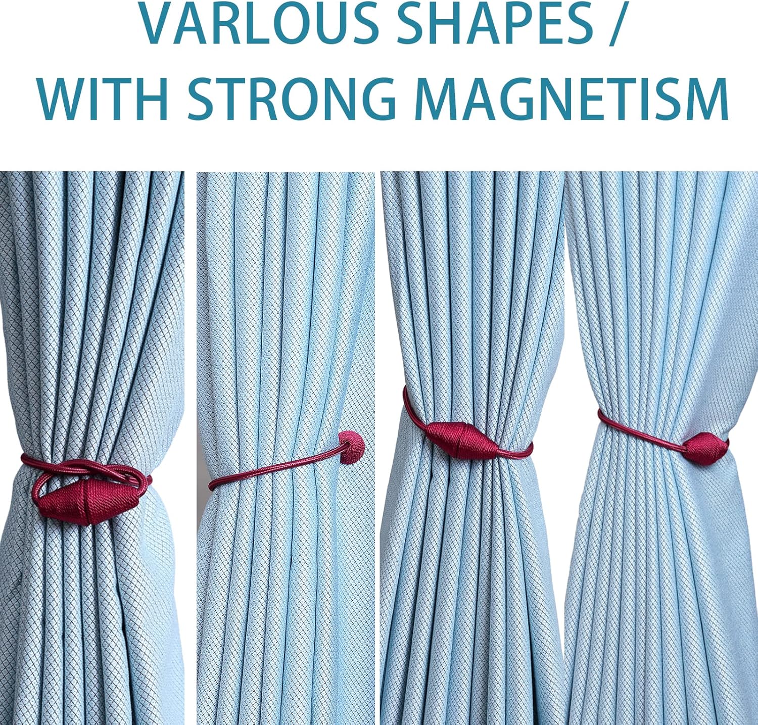 2 PCS Magnetic Curtain Tiebacks, European Style Convenient Drape Tie Backs Holdbacks for Thin or Thick Home & Office Window Draperies, No Tools Required-Burgundy