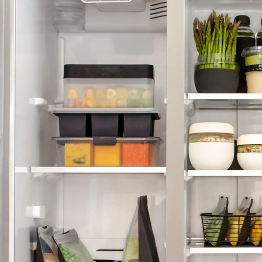W&P Ice Box Silicone Ice Cube Tray with Lid, Holds 96 Cubes, Space-Saving Stackable Design, Dishwasher Safe, Charcoal