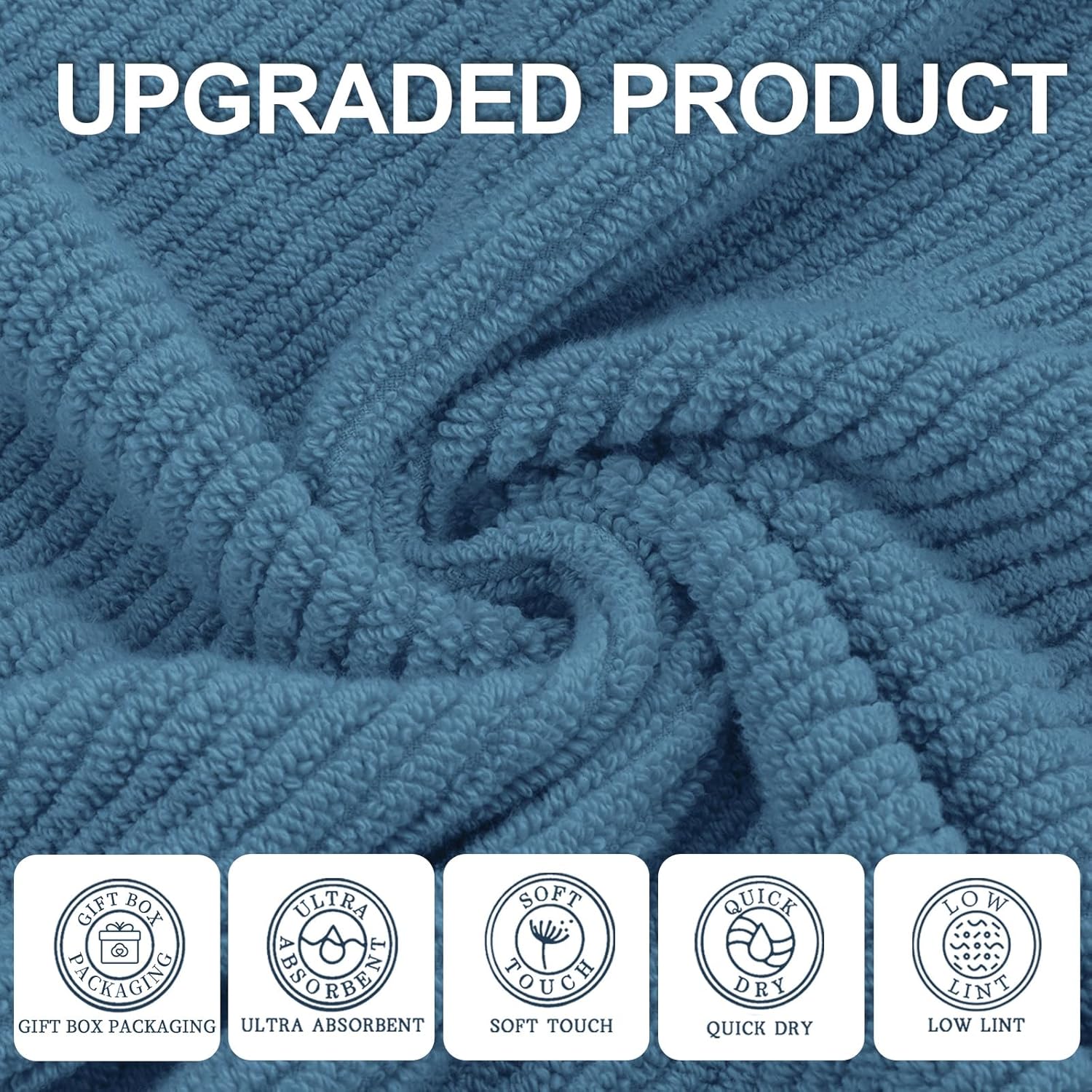 VOOVA & MOVAS Blue Towels Bathroom Sets, 100% Cotton | Lightweight | Soft | Quick Dry | Thick, Towel Set of 6, 2 Large Bath 30"x56", 2 Hand 18"x28", 2 Wash Cloths 13"x13", Denim Blue Towel Gift
