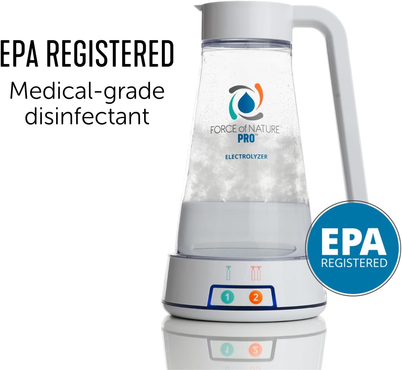 • ACTIVATOR CAPSULES INCLUDED (10-COUNT 10ML): 10 EPA Registered activator capsules (10ml each) included. Force of Nature Pro can make either 64oz in 14 minutes or 32oz in 7 minutes