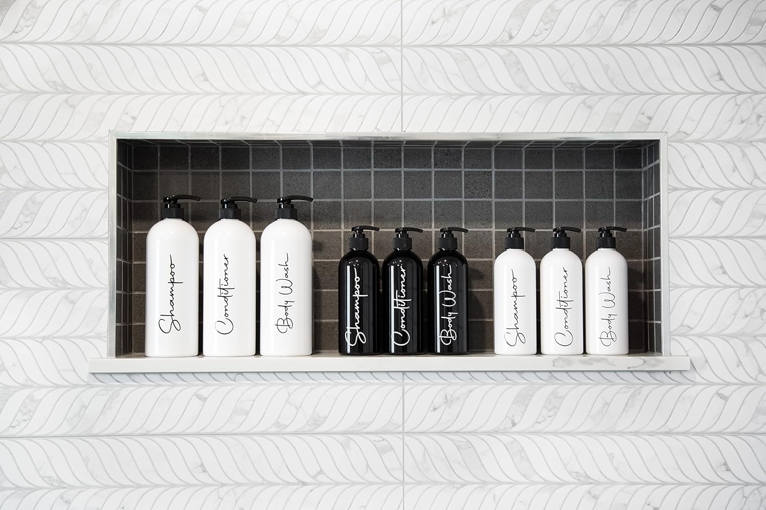 • LUXURIOUS HIGH-END STYLE APPEAL - A luxurious high-end look offsets your bathroom beautifully with elegant black script on a clean white background. Gorgeous silkscreened labels are permanent and peel-proof. Go from cramped and cluttered to soothing and spa-like.