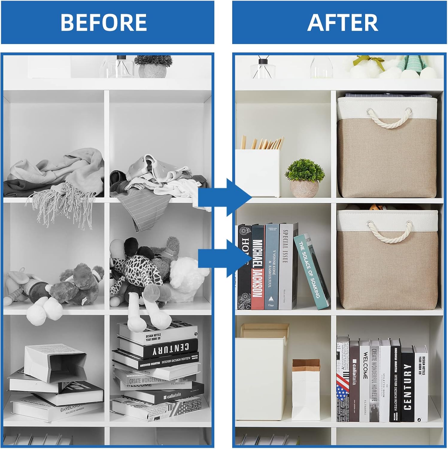 • Usage Tips: The organizer basket set comes with compression packing which may result in wrinkled in long-distance transit. DON'T Worry! Iron the wrinkles out with a steam iron or Fill the basket with stuff