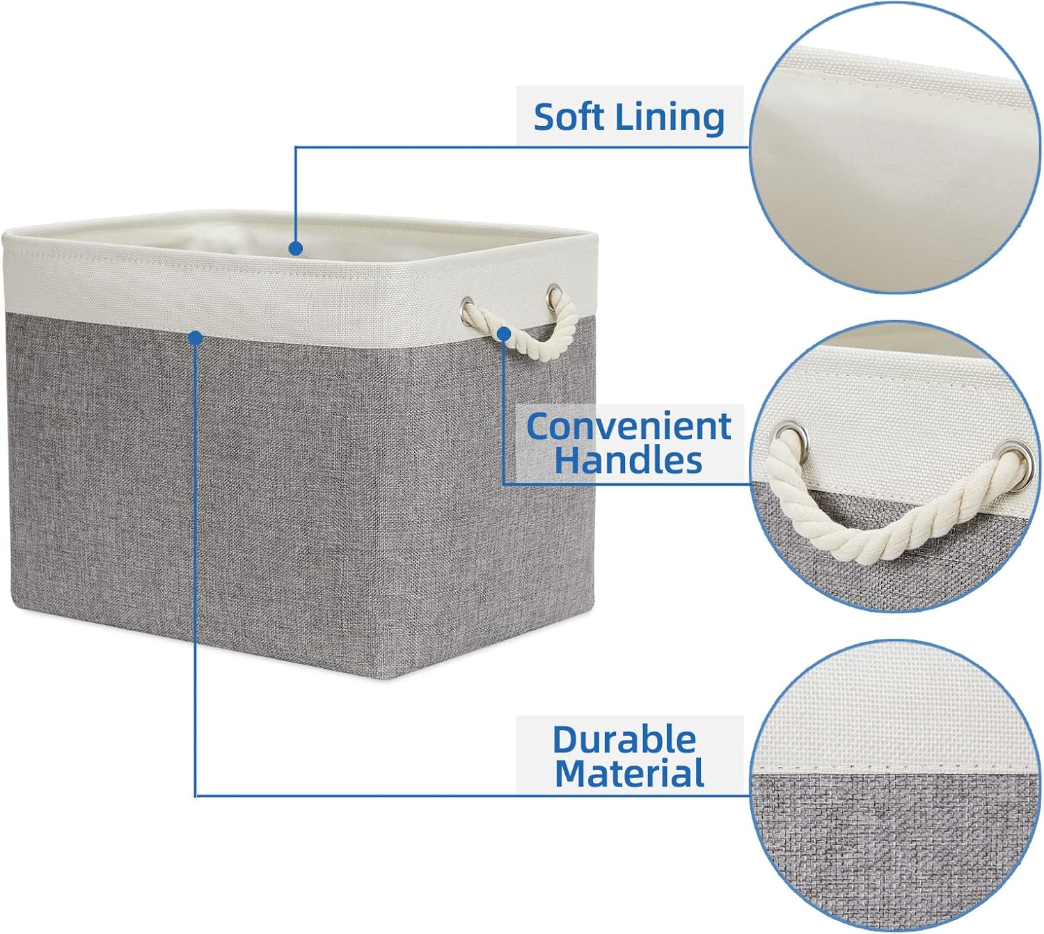 • PREMIUM QUALITY: These baskets are made of sturdy fabric&2.5mm thicken EVA, with soft interior lining. Reinforced by an upper metal supporting frame for maintaining greater structural integrity. Sturdy and high-quality material makes this cloth basket last a good long time