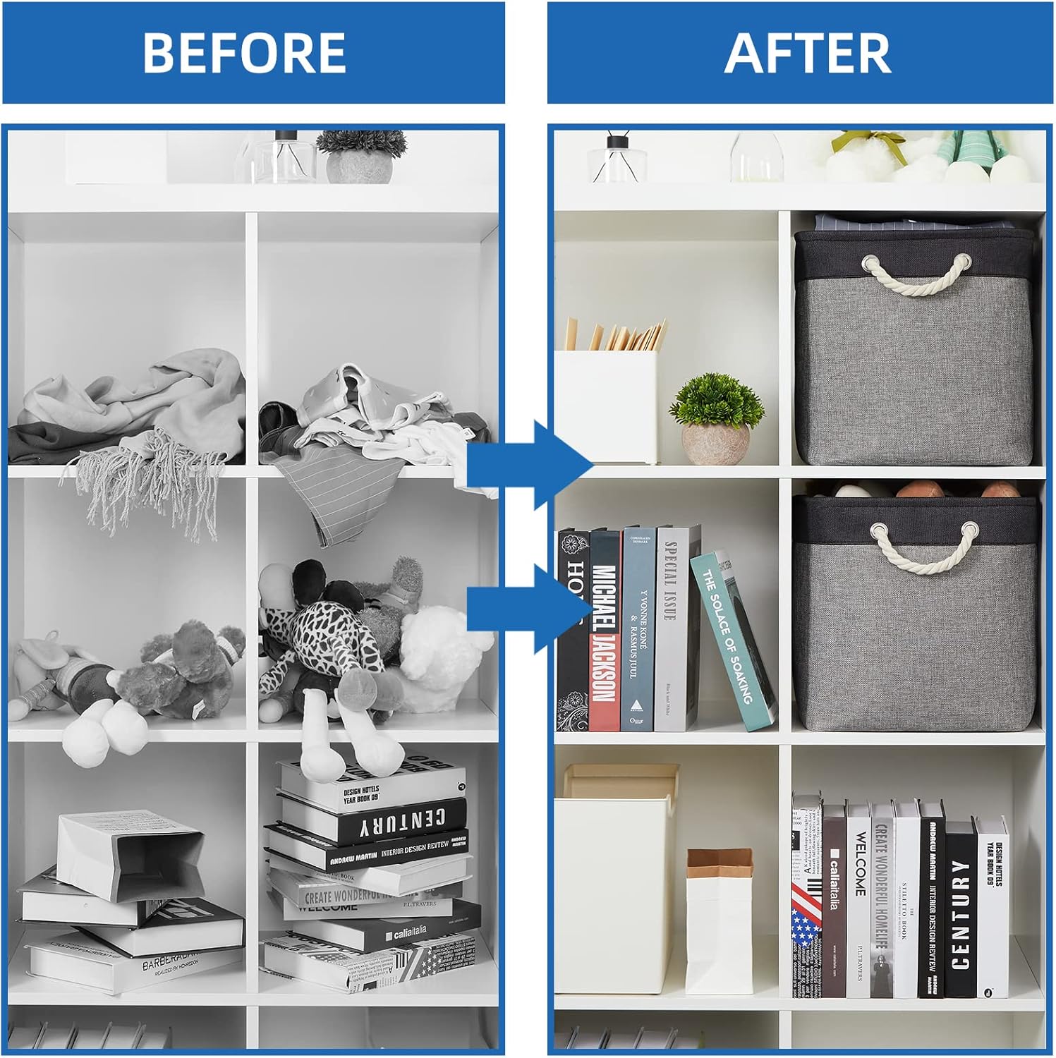 • LARGE BASKET SIZE: 16 (L) x 12 (W) x 12 (H) inches, 2-PACK. Perfect clothes storage basket for gifts empty, fabric storage baskets for organizer. This shelf basket allowing to store a variety of items. Sturdy big baskets may be used to hold clothes, towels, blankets, bedsheet, DVDs, magazines, books, shoes