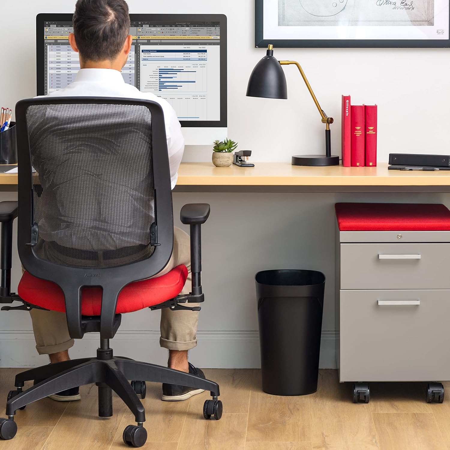 • MADE IN USA: Proudly made in the USA with global materials, this 6-gallon matte plastic small bathroom trash can features a sleek, modern design that blends seamlessly into any space. Perfect for use in the bathroom, bedroom, office, dorm, home, or as part of your room decor.