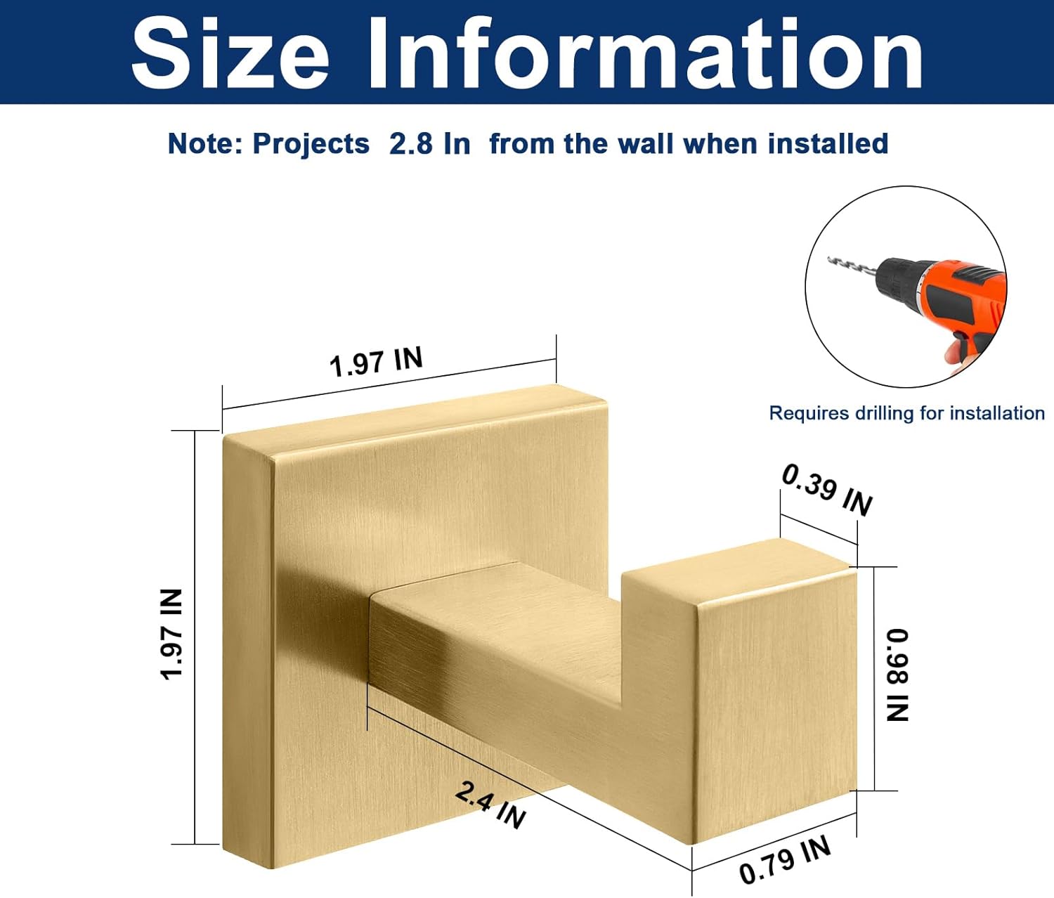 NearMoon Bath Towel Hooks -SUS304 Stainless Steel Square Clothes Robe Hooks Hanger, Heavy Duty Coat Hooks for Bathroom Livingroom Hotel Kitchen Garage, Wall Mounted (3 Pack, Chrome Gold)