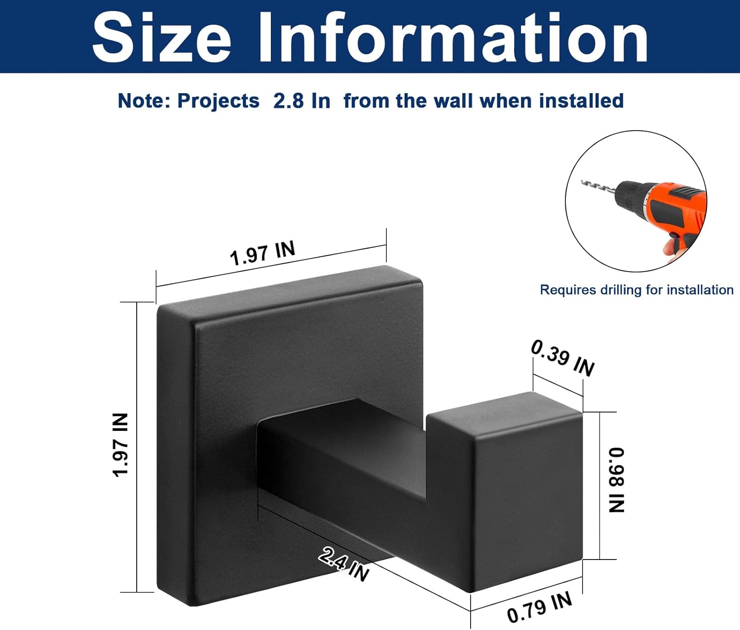 NearMoon Bath Towel Hooks -SUS304 Stainless Steel Square Clothes Robe Hooks Hanger, Heavy Duty Coat Hooks for Bathroom Livingroom Hotel Kitchen Garage, Wall Mounted - 3 Pack (Matte Black)