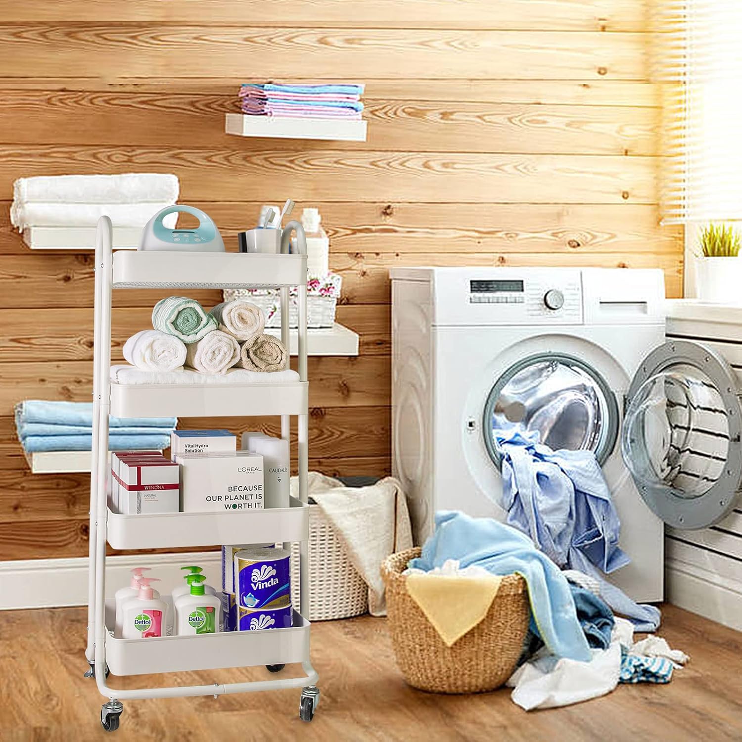 • [Multifunctional Storage Cart] This 4 tier rolling utility cart is easy to store and transport. It can be used as a tools cart, service cart, book cart, art cart, organization rack and more. Suitable for your office, bedroom, kitchen, bathroom, living room, baby room, laundry room, pantry, studio, classroom, and craft areas.