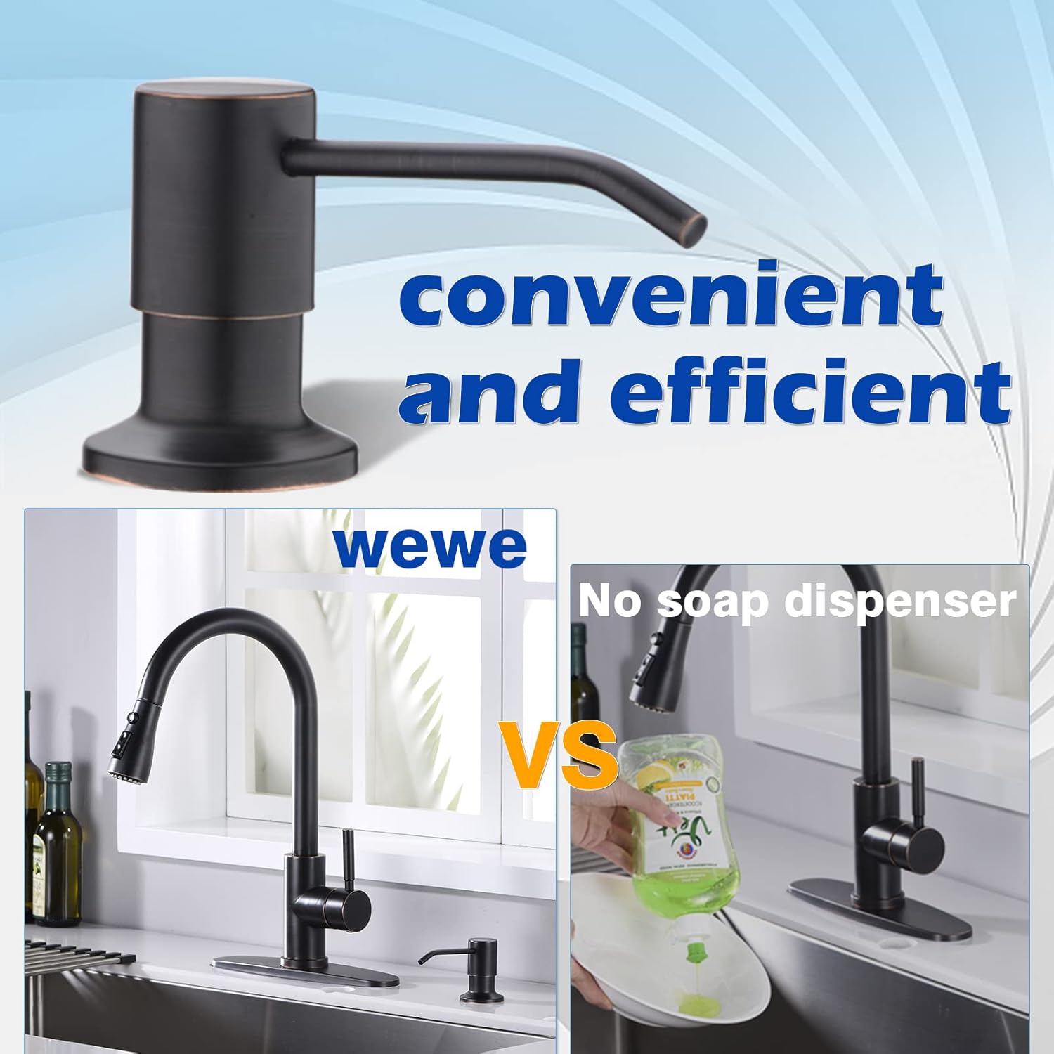 Kitchen Sink Soap Dispenser, WEWE Built in Soap Dispenser Kitchen Countertop Oil Rubbed Bronze Refillable Under Sink Black Pump Liquid Soap Dispenser for Kitchen Sink Stainless Steel Under Counter