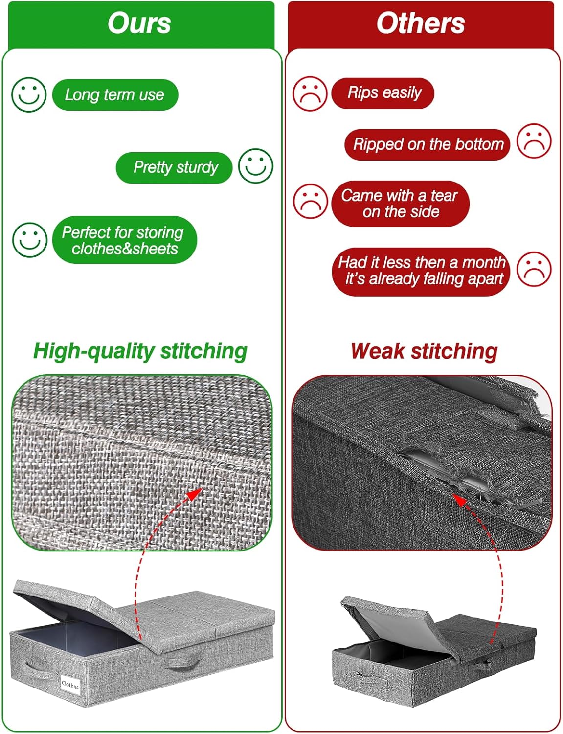 • STURDY STRUCTURE & STURDY HANDLES: 3 Reinforced sewn-in handles make it easy maneuverability and convenient for you to carry and pull out from under the bed; handy bins make excellent blanket organizers and storage; Lasts longer than underbed storage containers plastic; Keep your bedroom neat and tidy with storage bins with lids that fit your room's existing decor and theme
