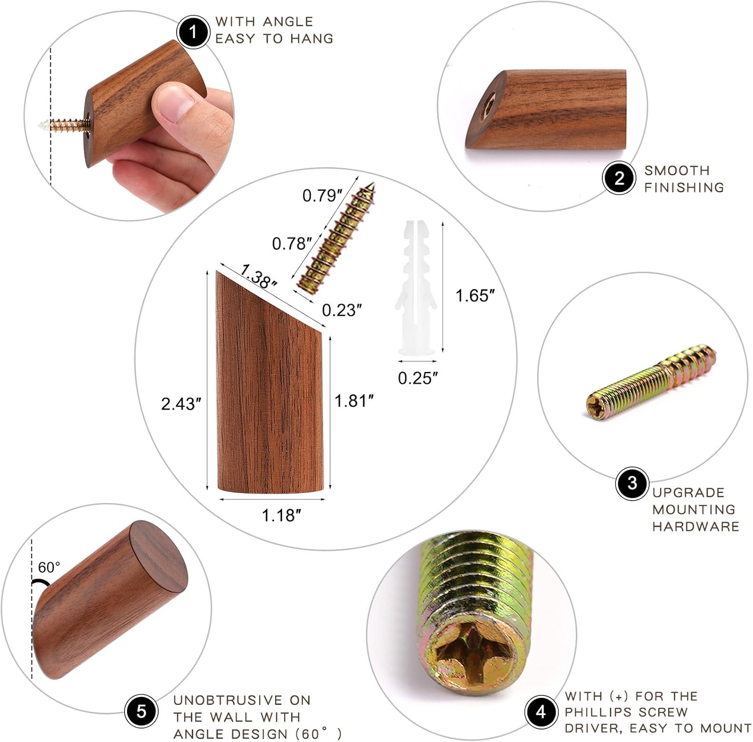 • EASY TO INSTALL – We have UPGRADED the screw with a notch (+) for the Phillips screwdriver. So it is easier to install. 1) Drill a hole. 2) Hammer the anchor into the wall. 3) Screw into the wall anchor with a driver. 4) Twist the wood-hook into the screw and tighten it to the wall with a proper angle (mounting hardware included)