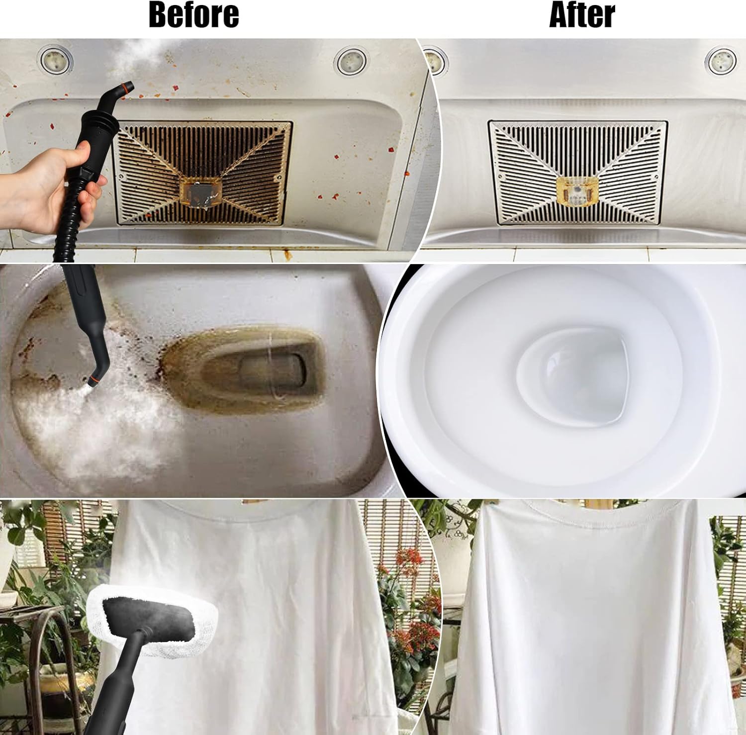• 🏠【Chemical-free Steam Cleaning】With 1400W of power, the steam cleaner provides 257℉pressurized hot steam to eliminate stubborn stains and dirt, saving your time and improving your efficiency. The natural household steamer uses 100% chemical-free water to clean, without any harmful substances and residues so as to protect your family’s safety.