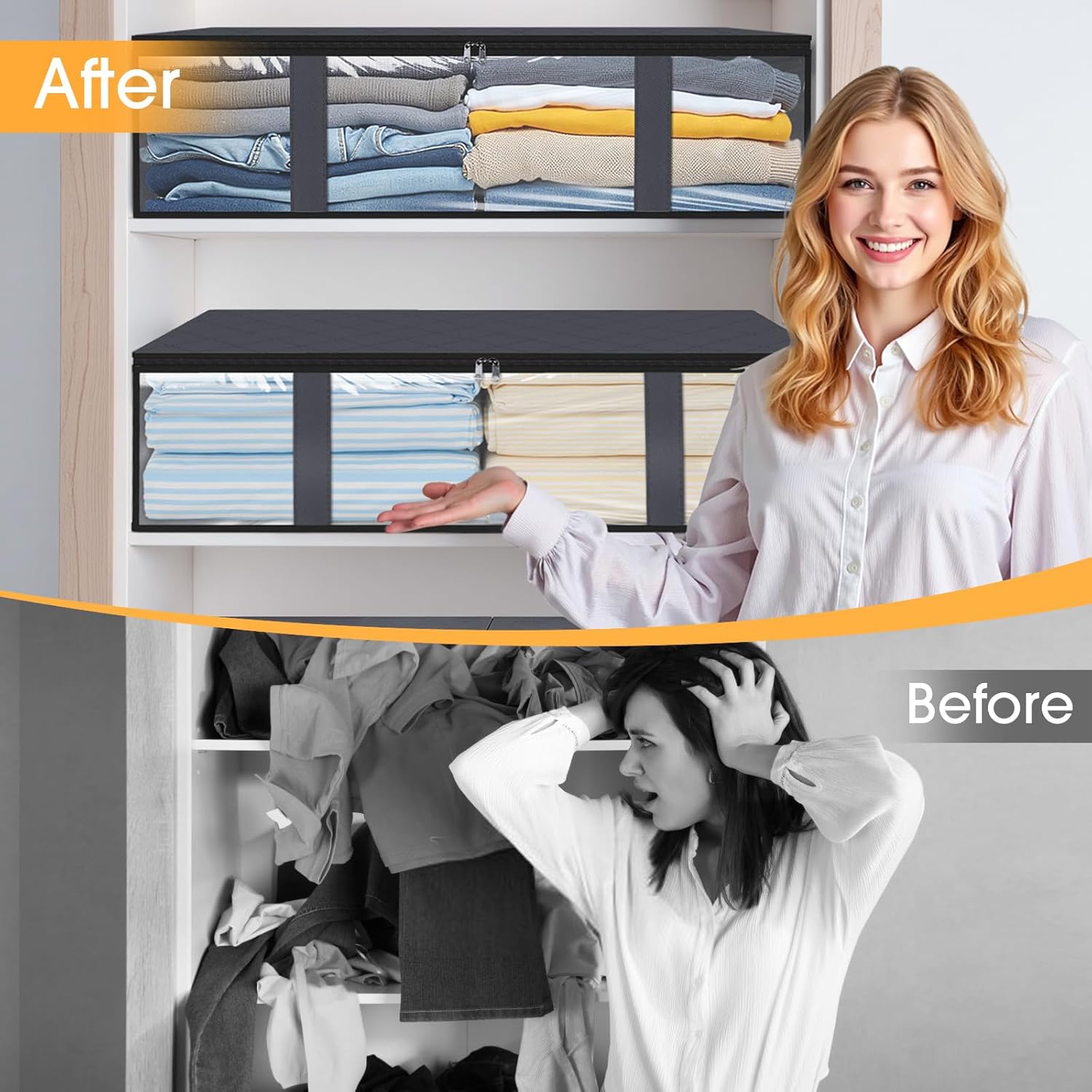 StorageRight Under Bed Storage Bins, 4-Pack 40L Foldable Fabric Storage Bags with Transparent Window, Breathable Organizer for Clothes/Blanket/Comforter/Quilt, Grey